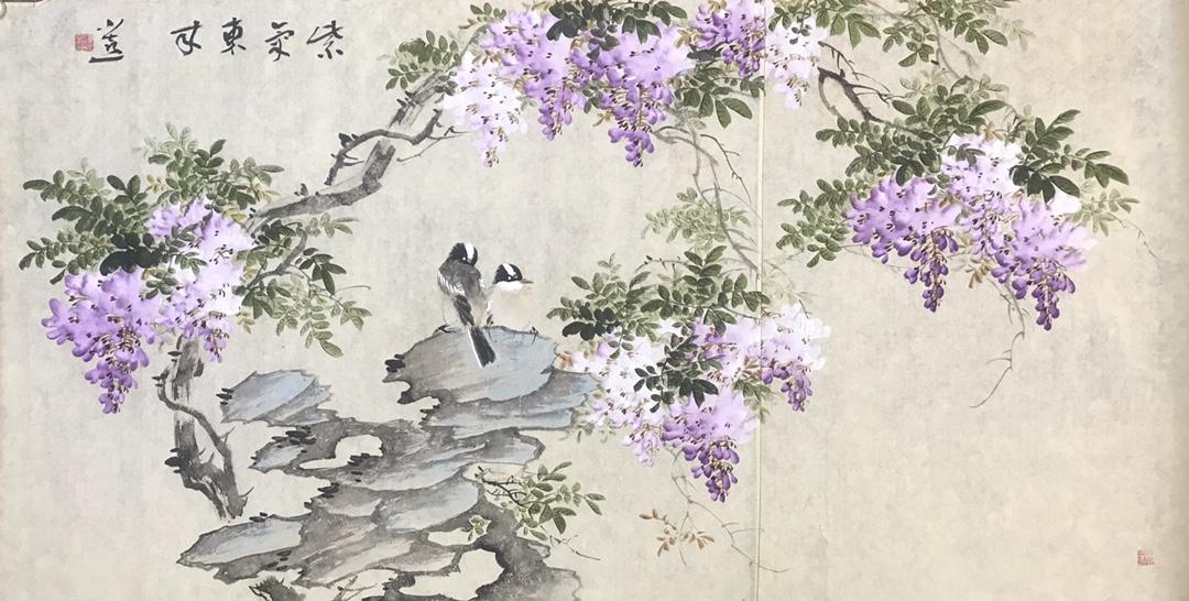 皇甫小喜的写意紫藤画,清雅又有灵气。笔墨简练却意境悠远,紫藤花开烂漫,枝蔓舒展自