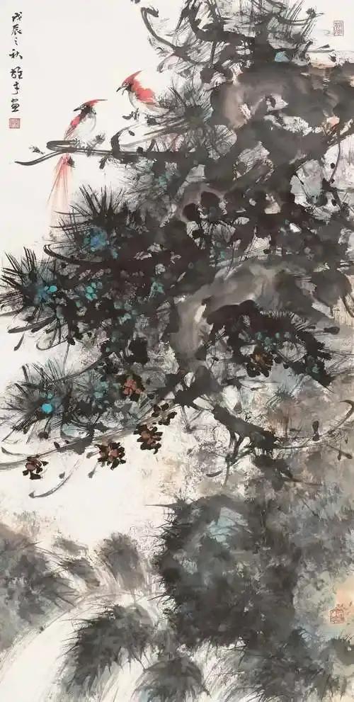 黎雄才以“黎家山水”闻名中外,其画作气势雄浑,青绿设色与墨色相融,笔墨老辣,笔下松树极具辨识度,为山水画注入时代新风。