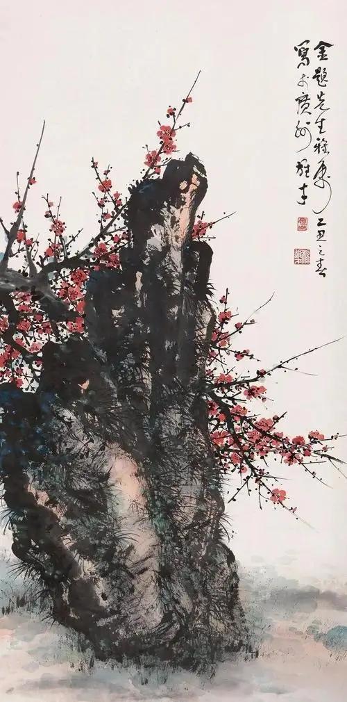黎雄才花鸟画不止于形似,更借景物寄寓人文情怀,如石榴寓意多子多福,红梅彰显生命力量。其书法亦融碑帖之长,雄强豪迈又淡雅灵动,不愧是岭南画派的艺术大家。