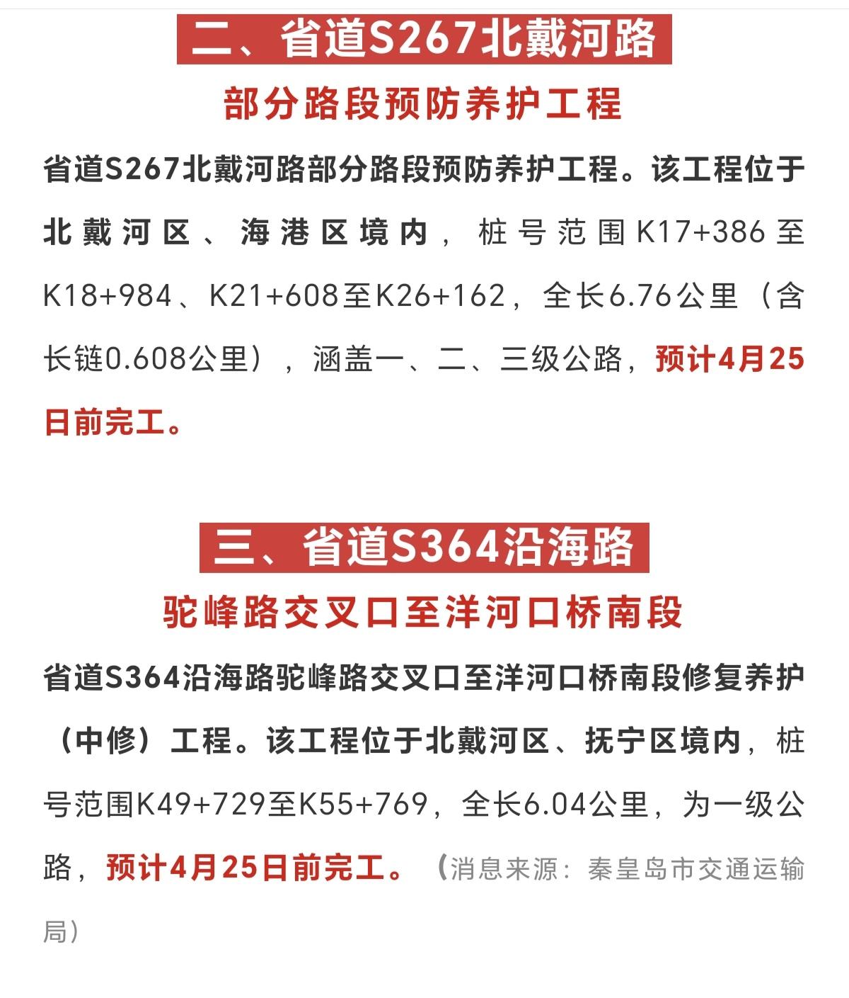 海港区和北戴河区很多路段都在施工———滨海大道、省道S267北戴河路、省道S364沿海路,周末出去游玩的小伙伴请注意提前制定绕行路线!