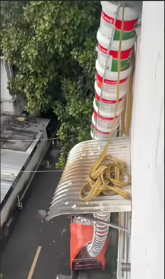 时间点就在那天晚上,他盯着家里和工地上常见的废旧塑料桶,心里突然冒出一个念头:垃圾本来就是往下运,干嘛非得一趟一趟扛下去!这不是拿身体硬拼吗!第二天他就开始收桶,前后凑了37个装修剩下的大口塑料桶,把桶底一个个切掉,再把桶身套接起来,接头处反复调整,卡紧、加固、试长度,做成一条长长的通道,从四楼窗口一直通到楼下垃圾堆放点,拉开能到11米,不用的时候还能收起来放墙角,简单,直接,真能派上用场!