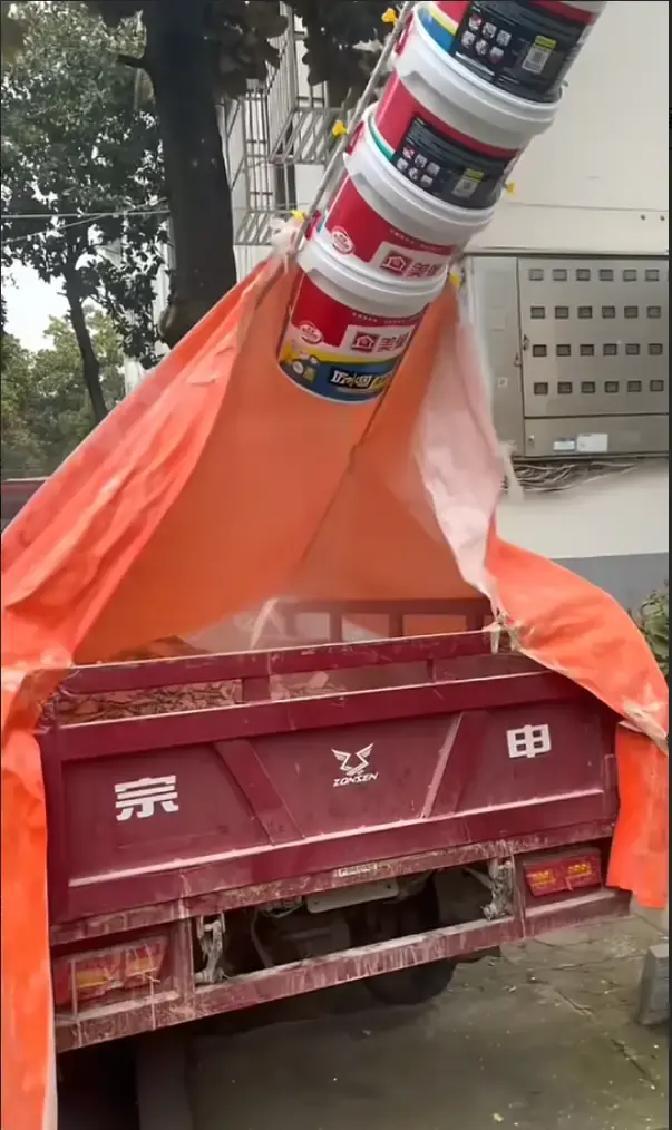 另一边也能看出这事不是凭空冒出来的,小伙本来就在工地干活,知道垃圾的重量,知道楼层的高度,也知道什么地方最容易卡住,妻子的提醒给了方向,他自己的经验把东西做成了。这个办法能成,靠的不是花里胡哨的设备,就是把废料重新利用,把平时最常见的塑料桶接成滑道,材料不贵,做法也不算复杂,工地上的人一看就明白。