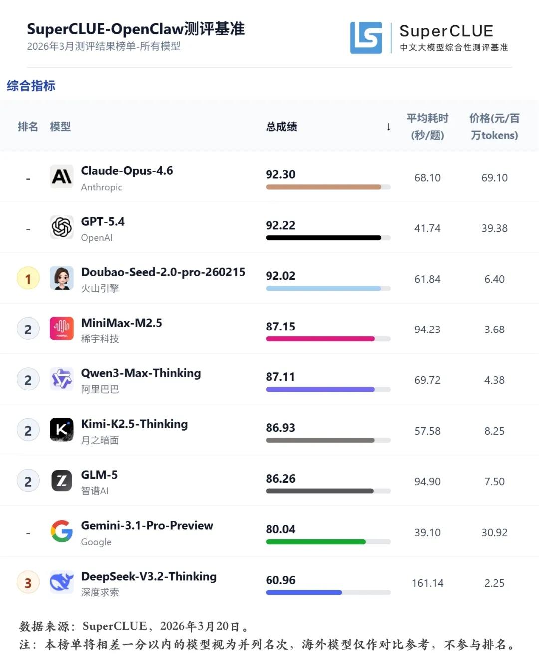 SuperCLUE-OpenClaw 3 月测评报告的出炉,让市场看到了国产大模型在 AI Agent “养虾” 场景中的硬实力 —— 火山引擎豆包大模型 2.0 Pro 以 92.02 分跻身全球第一梯队,成为国内 “养虾” 的标杆模型,而火山引擎提出的 “模型、安全、Skills” 三大核心要素,也为 AI Agent 的本土化落地提供了核心方法论。