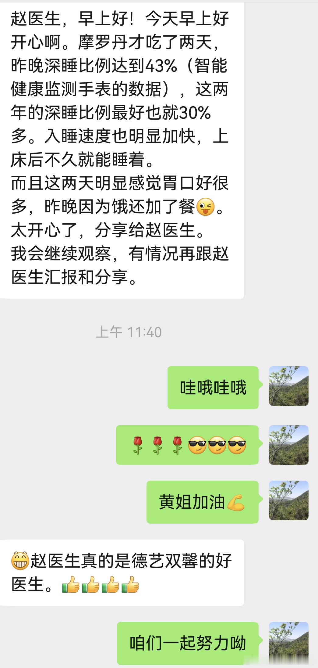 我让她回去用摩罗丹改汤,一次2颗大蜜丸,每天2次,煎汤口服,耐心吃一个月,等胃津来复,再作打算!大姐很信任我,回家就照做,两天就发来了“喜报”