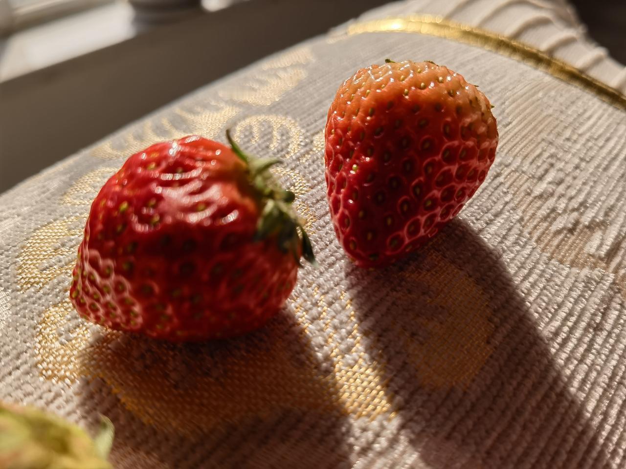 草莓果,挺上镜的。 它娇艳饱满,香气清甜,看着就有食欲! 真正的草莓是六七月才熟