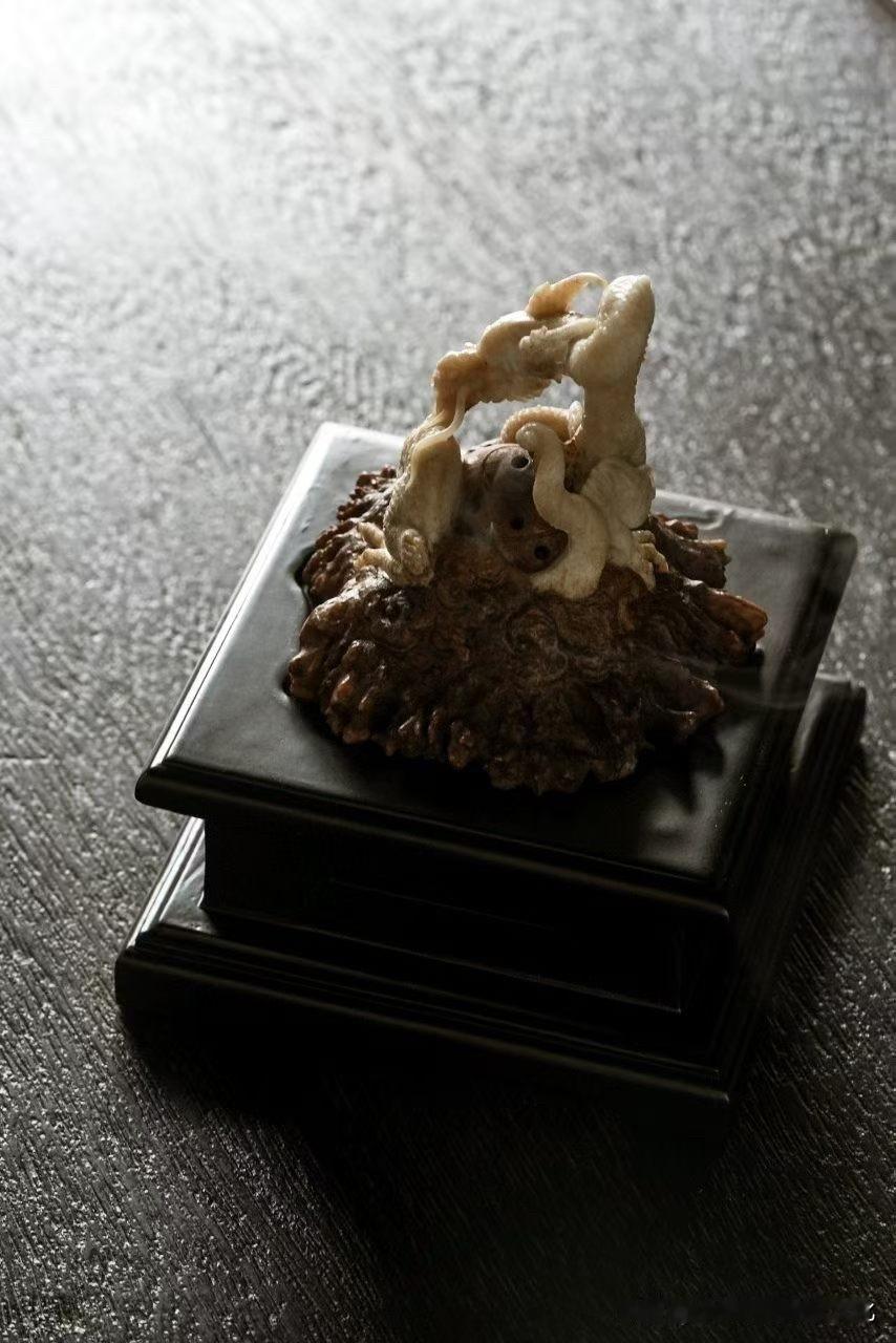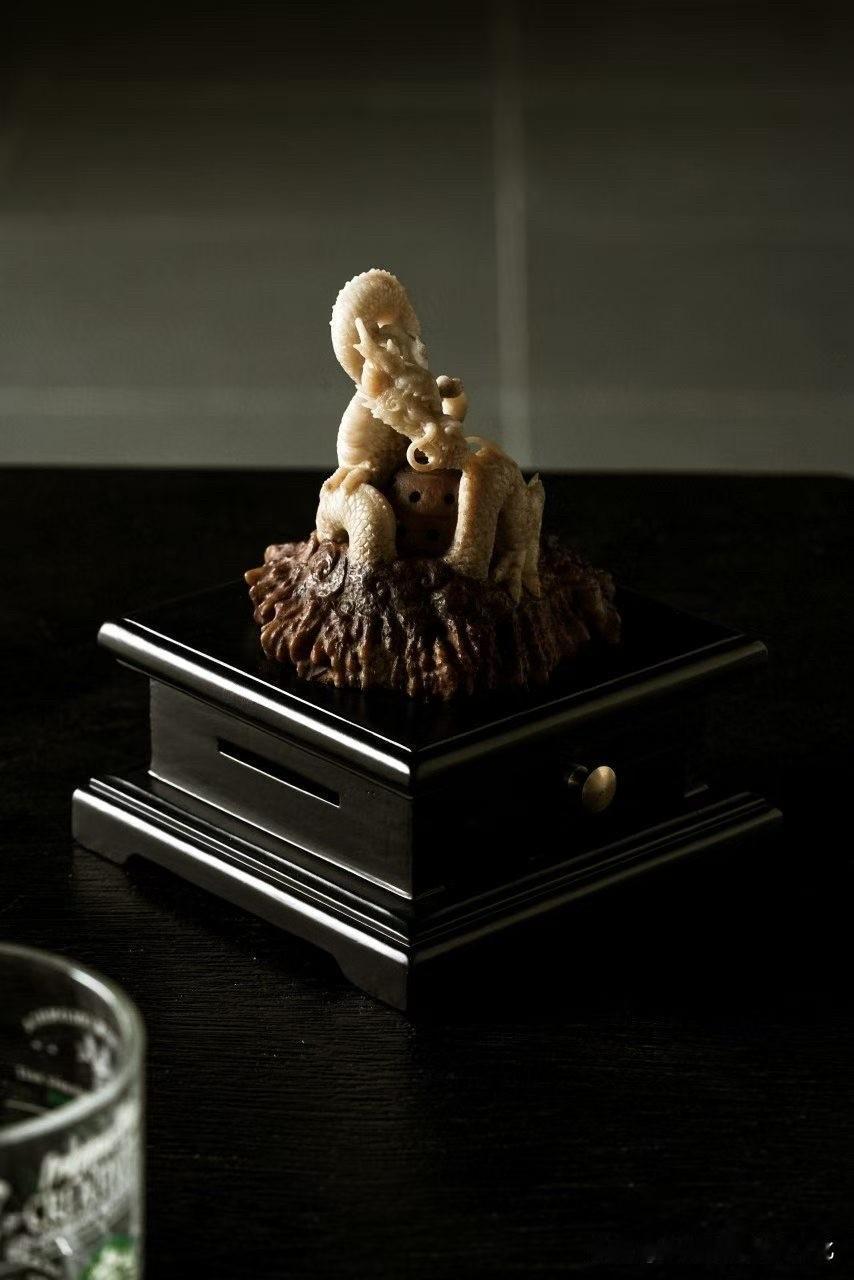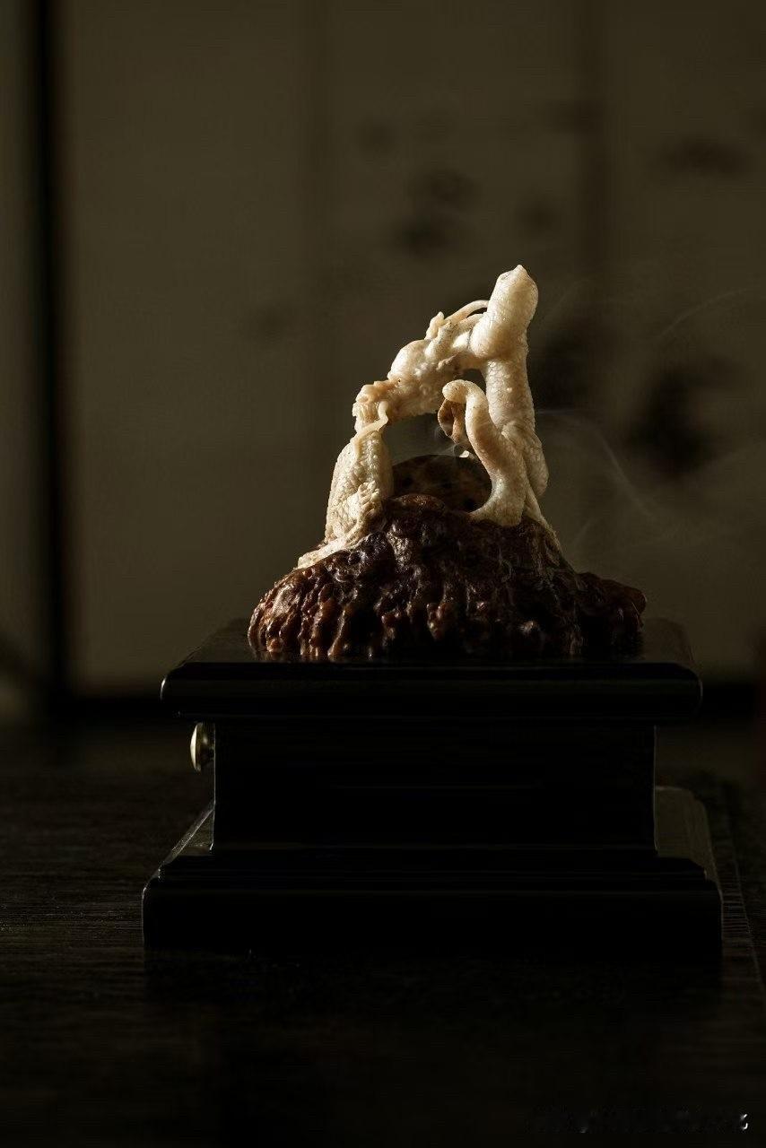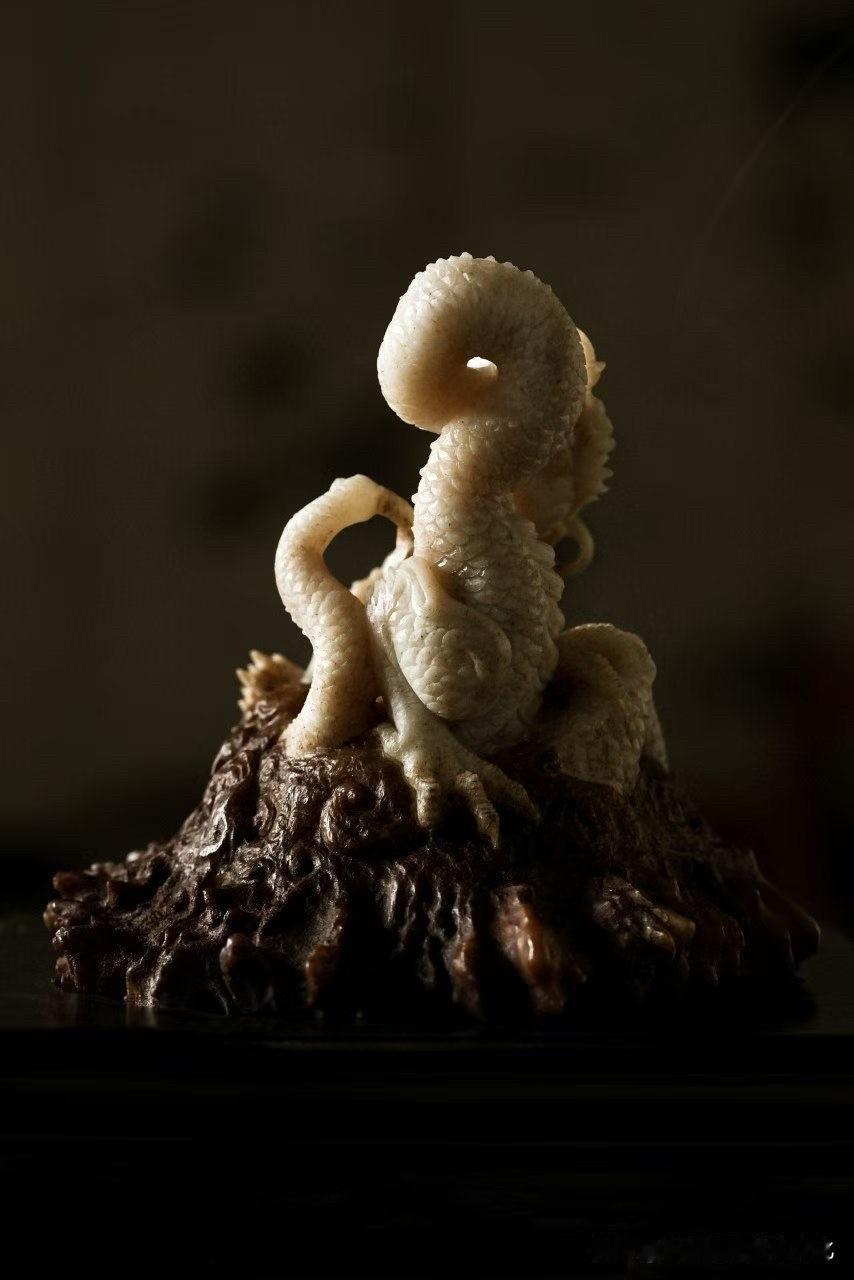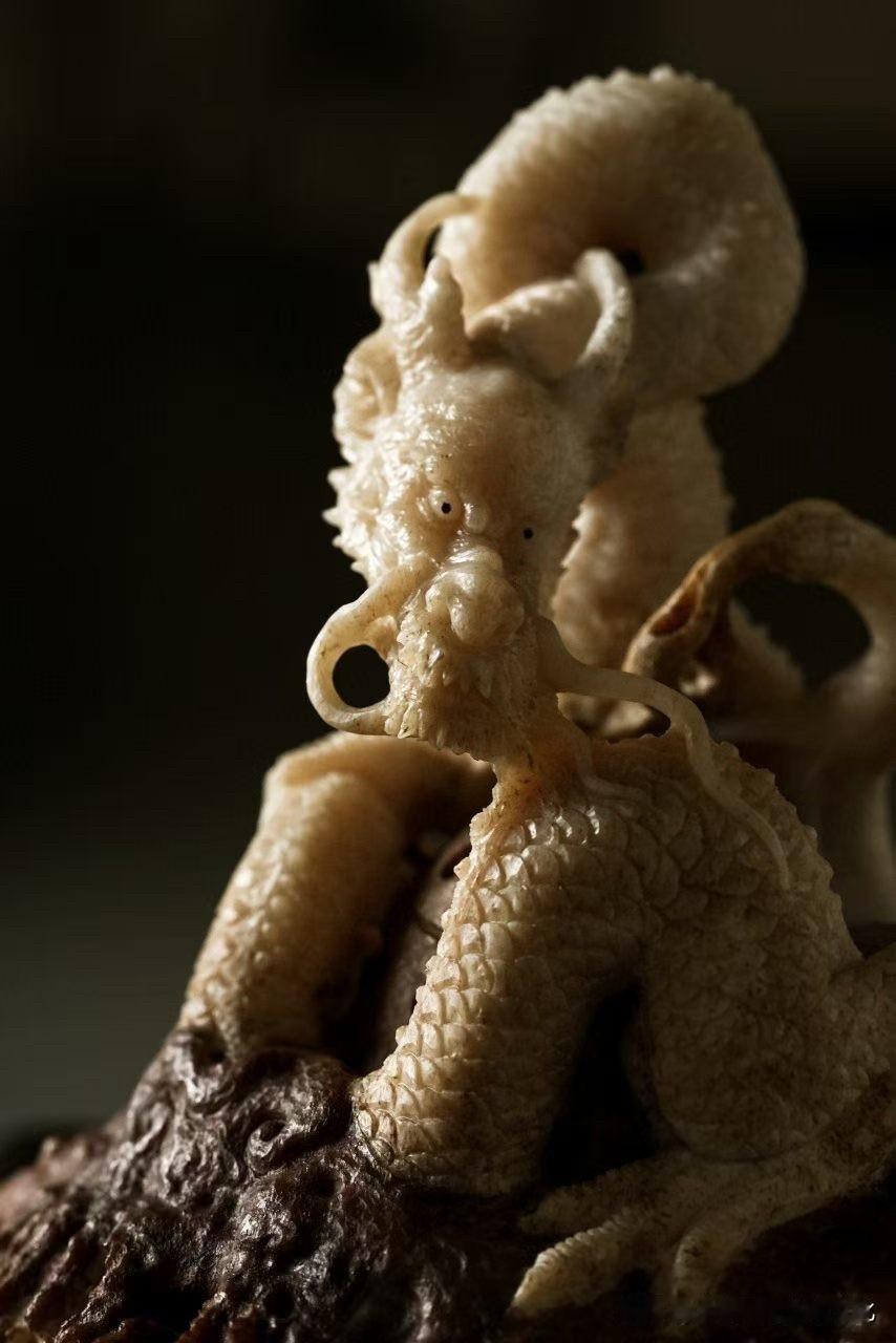 苍龙盘踞,似将出云入海。筋骨起伏有力,线条不求繁,却见劲道。鹿角的温润与骨感并存,让这份“动势”被收住,不躁不乱,只留一股内在的力量。