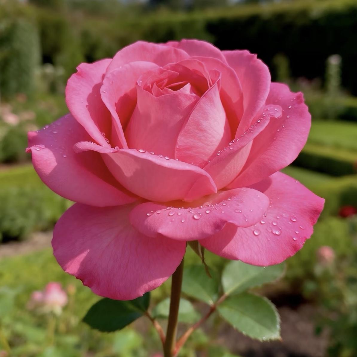 月季花盛开时,那景象简直绝了! 就像一幅幅美丽画卷铺展眼前。 美艳月季是碗杯状,