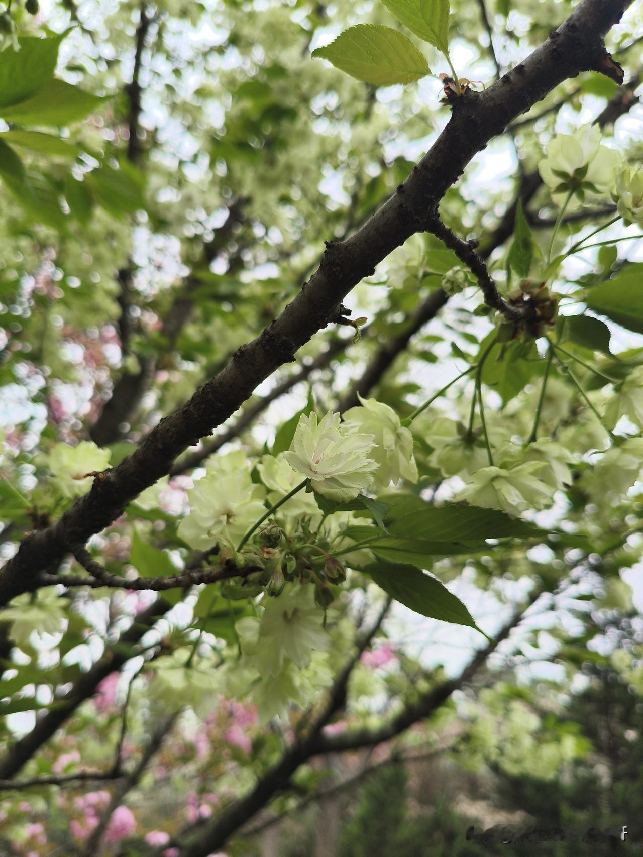 后来在网上搜了一下,还真是樱花,说是绿颜色的樱花是樱花中的大熊猫,非常的稀有,而且比较难扦插,哇塞,这么稀有的品种都被我遇到了,真的是运气超级好啊!