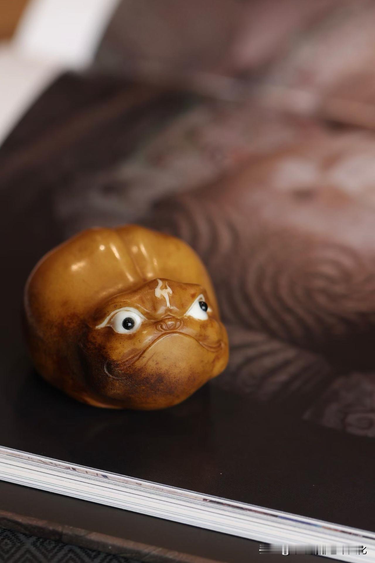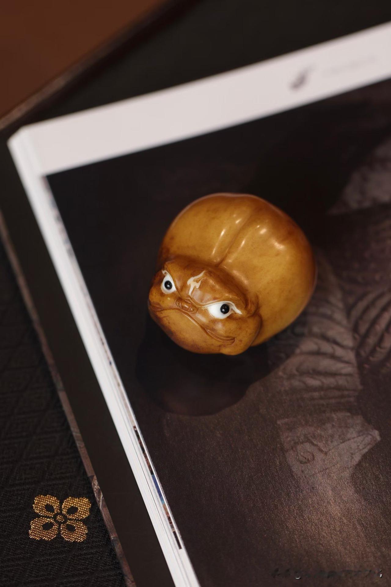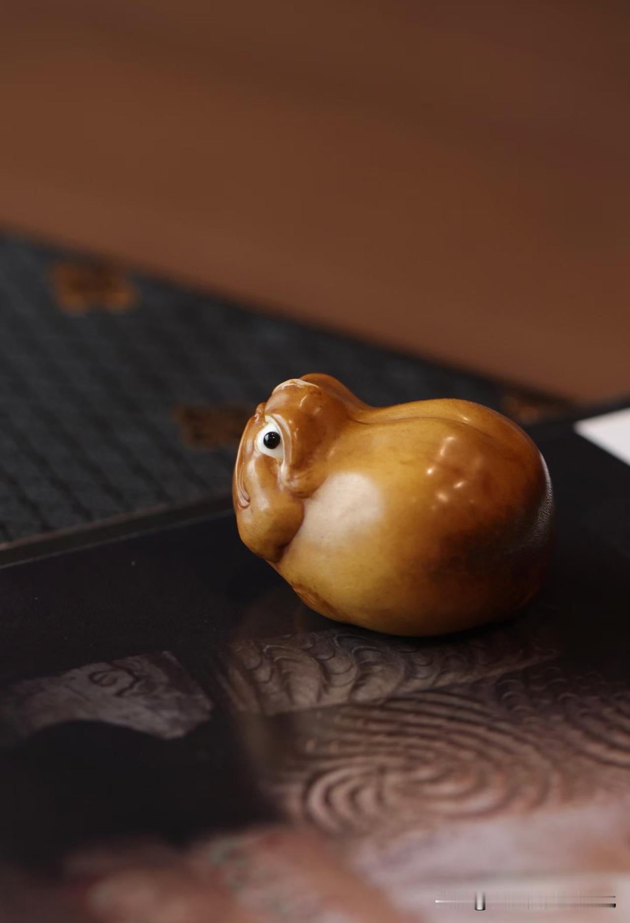 鹿角的温润里带着时间的沉静,颜色不张扬,却越看越耐人寻味。整件随形而作,刀工收得住,圆润中带一点灵动,眼神微挑,有点俏,有点“懂事”,不像守财,更像在“守气”。