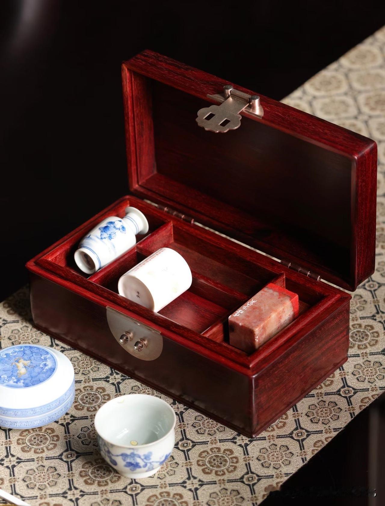 还是一件值得慢慢看的“小景”?紫檀木器 紫檀首饰 海黄首饰盒 故宫首饰盒 老木首饰盒 首饰盒摆件 棋盘格纹首饰盒