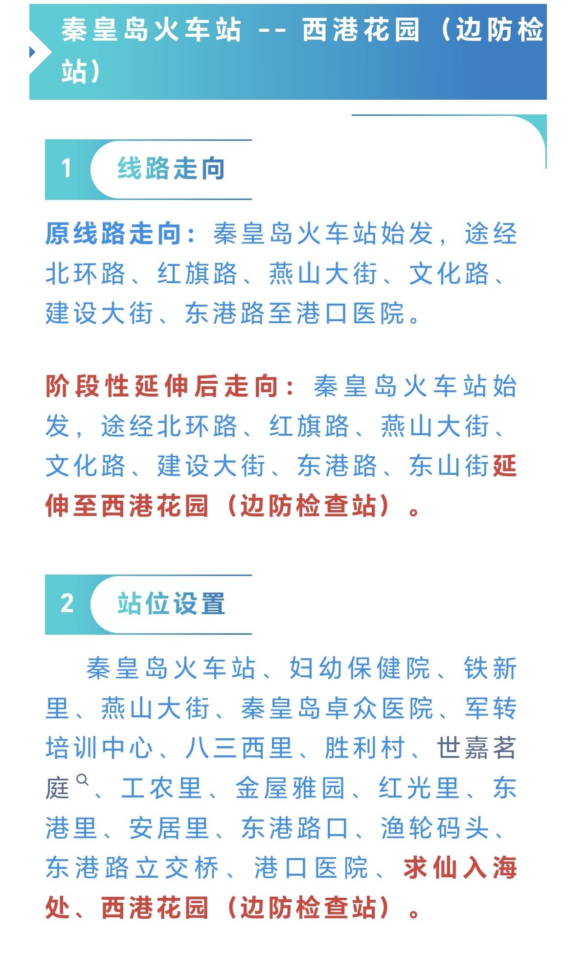 秦皇岛这条公交线路延伸至西港花园→ 自2026年4月4日至10月8日,7路公交阶段性延伸试运营,保持北环路至东港路路段走向不变,沿东山街向西延伸至西港花园(边防检查站),让每一次出发,都能遇见海的温柔。