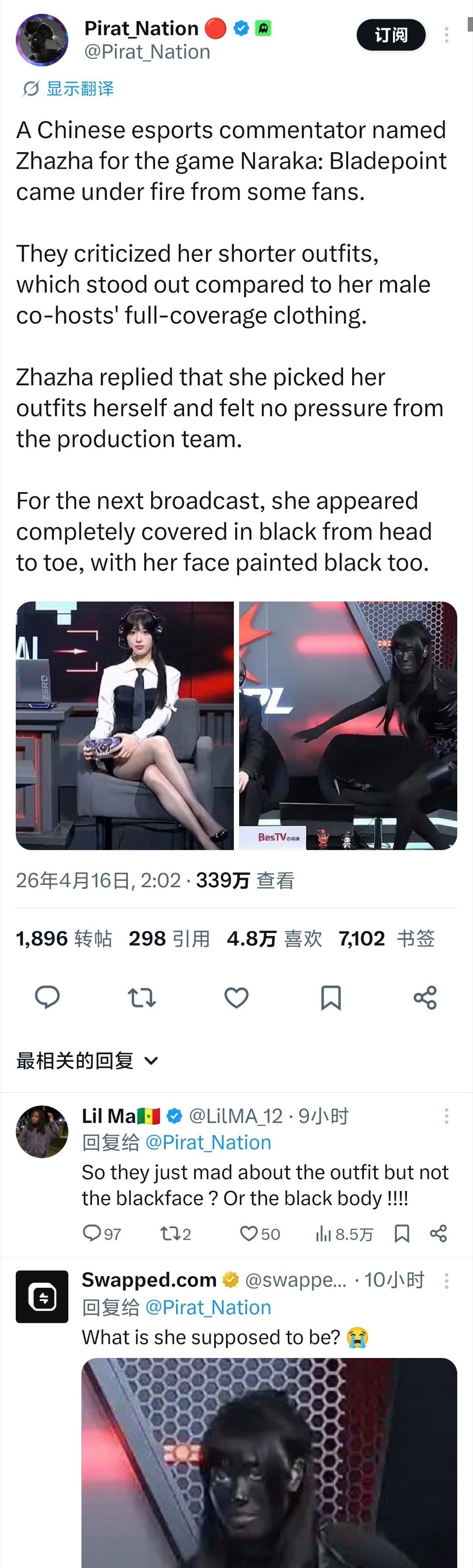 永劫无间比赛女主持的事火到外网了😂最搞笑的是涂黑也算歧视,真是国内想不到的角度