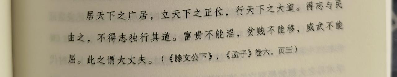 居天下之广居,立天下之正位,行天下之大道。得志与民由之,不得志独行其道。富贵不能淫,贫贱不能移,威武不能屈。此之谓大丈夫。
