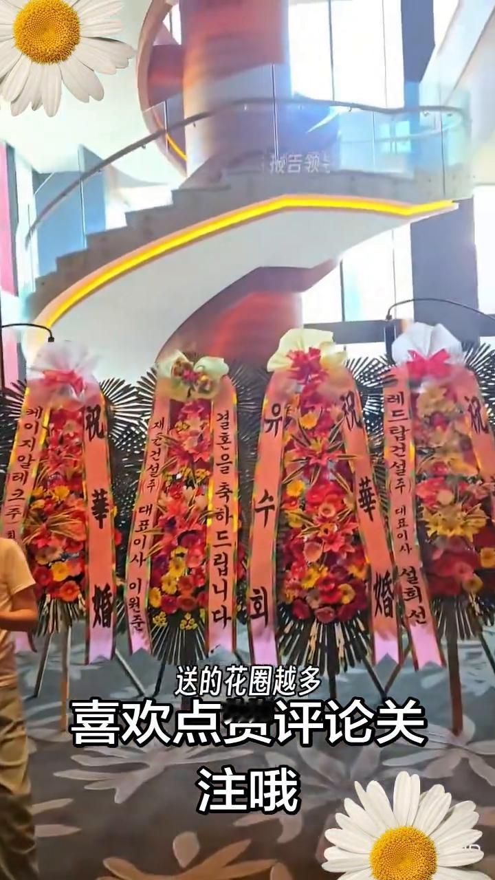 来到婚礼现场,眼前景象更让人吃惊。放眼看去到处都是亲朋好友赠送的花圈,据说在韩国送的花圈越多就意味着给新人的祝福越深。还有客人随的份子竟然是用白色纸袋装着的,这和传统认知有着极大的差异。虽然整个婚礼下来流程看着和我们也差不多,但每处都感觉到非常的别扭,可能是以前模仿的时候不小心抄错了内容。