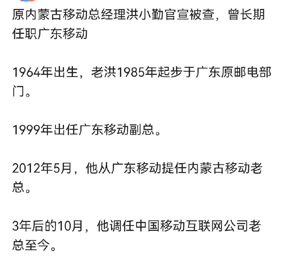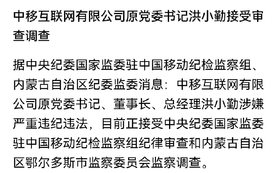 老洪曾主政内蒙古移动 从他接受的监察调查是鄂尔多斯监委来看,大概率他所做的事情