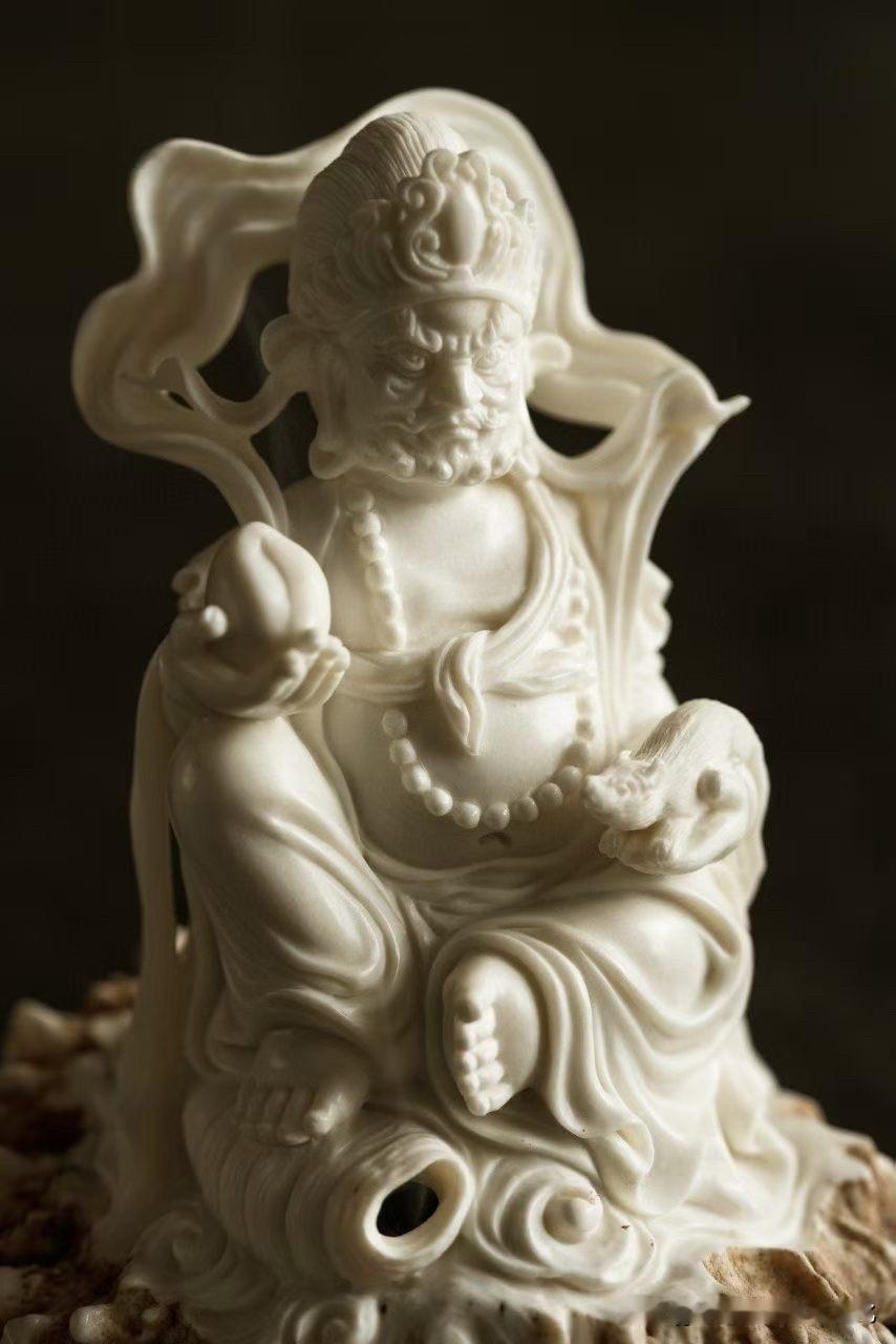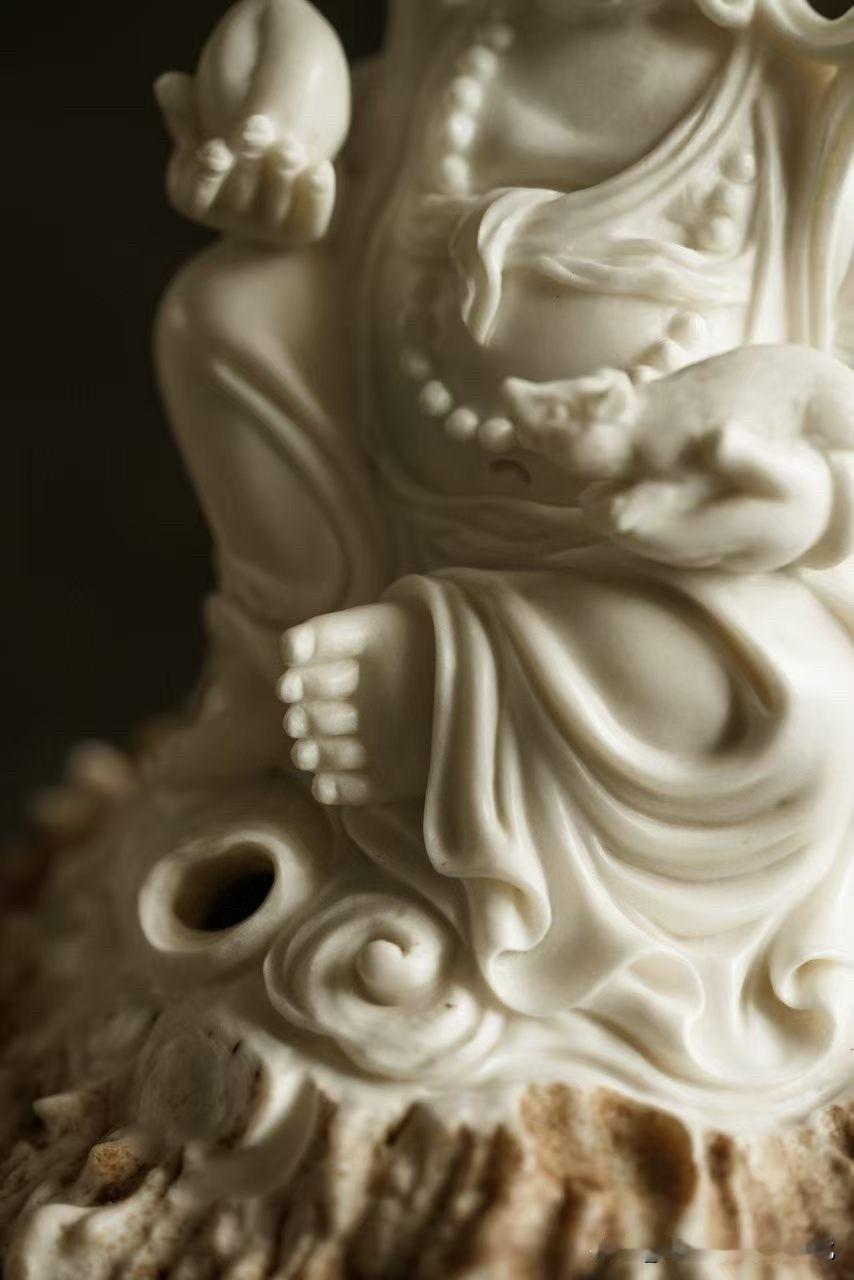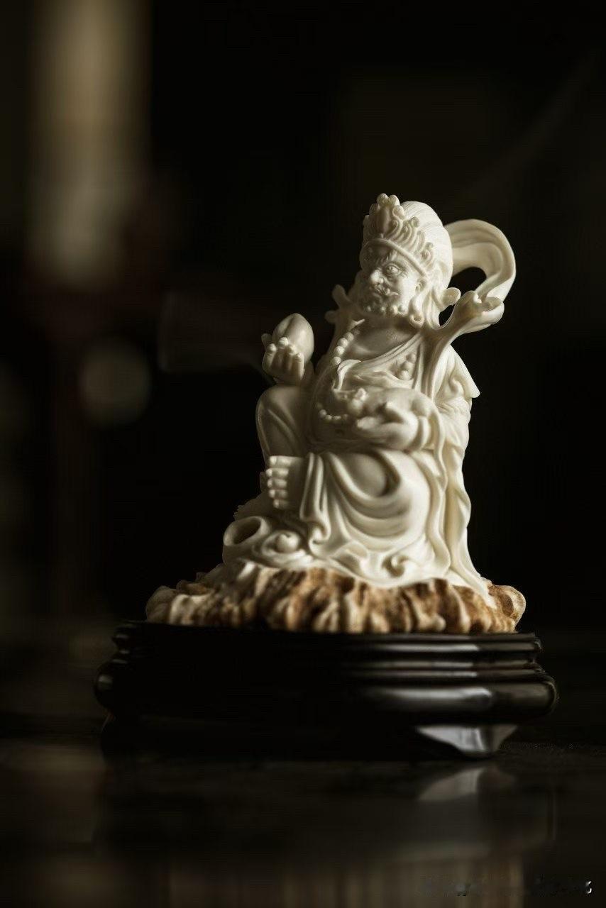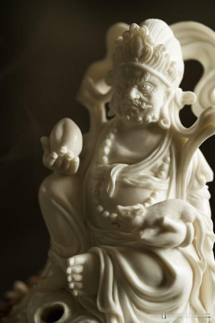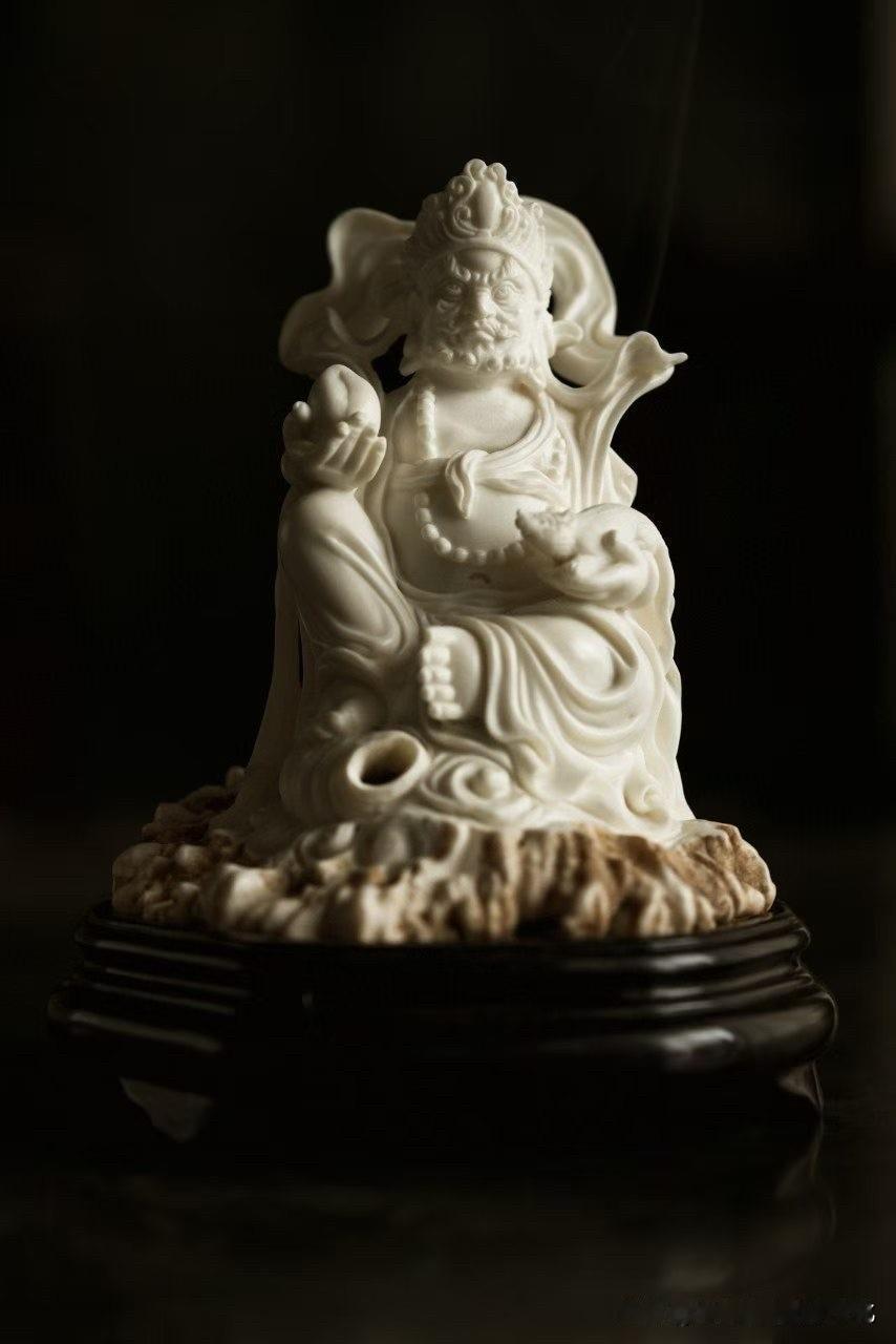 这尊黄财神香炉,鹿角质地温润细腻,