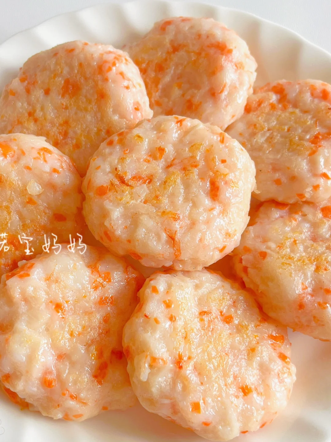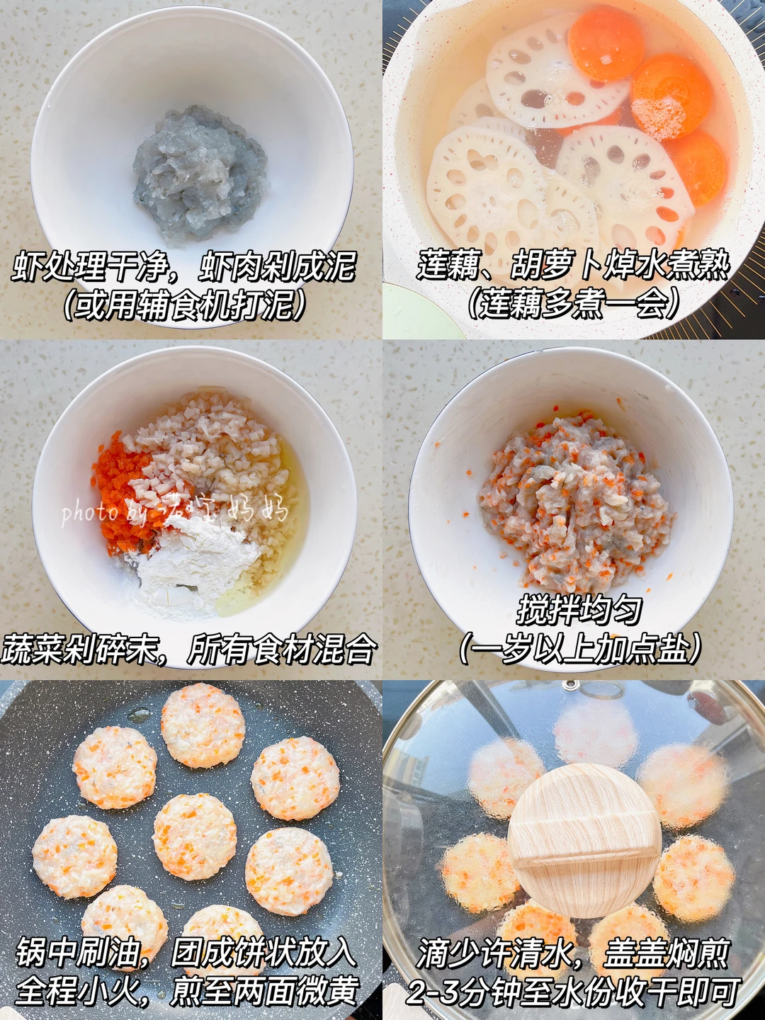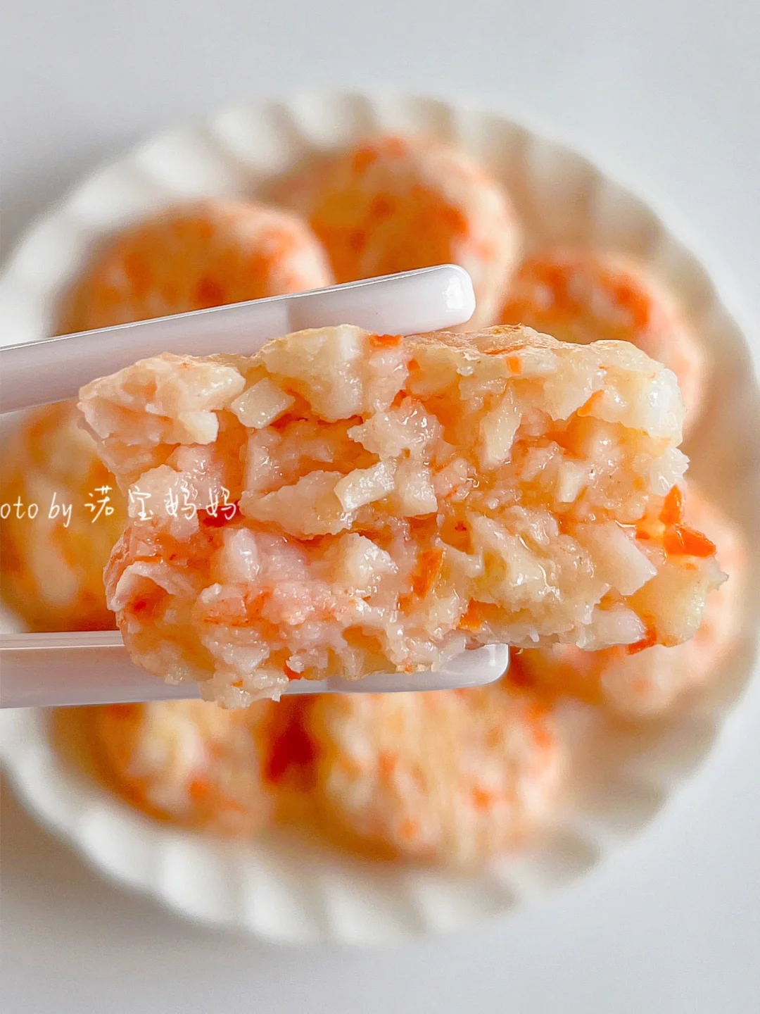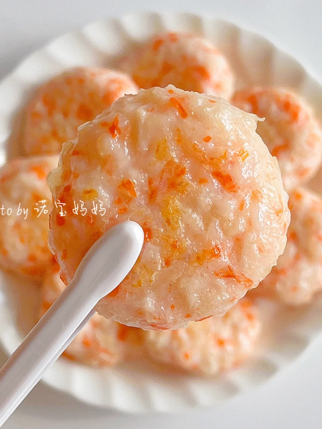 1️⃣鲜虾处理干净,虾肉剁成泥(辅食机搅打成泥)