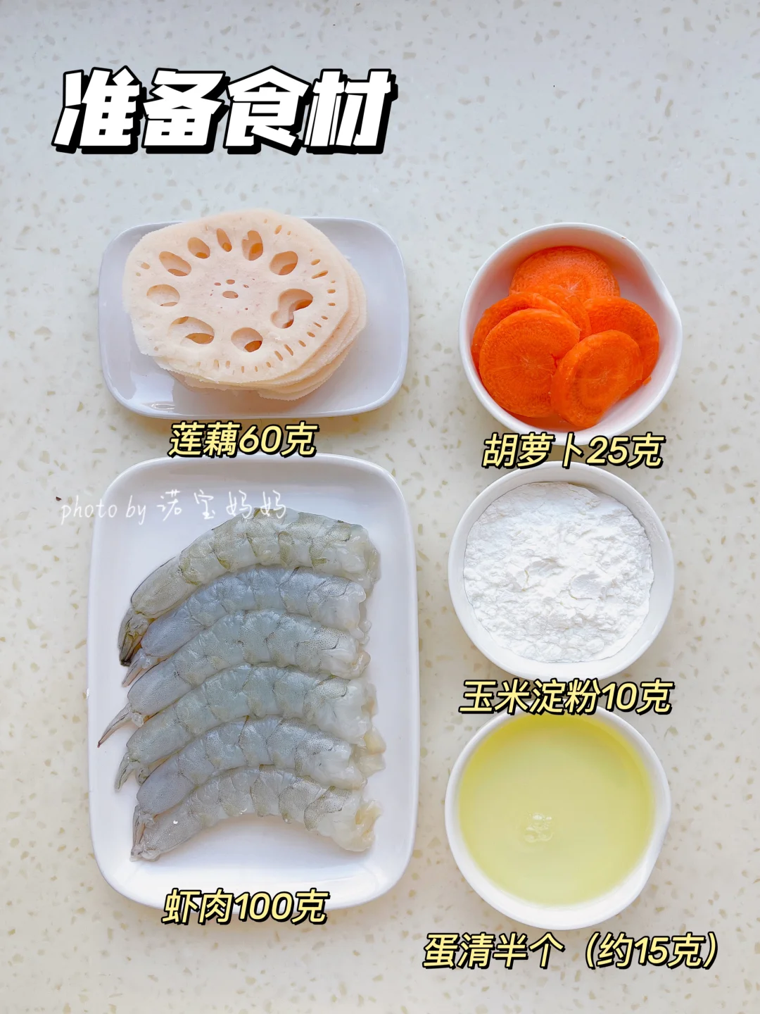 莲藕60克,虾肉100克,