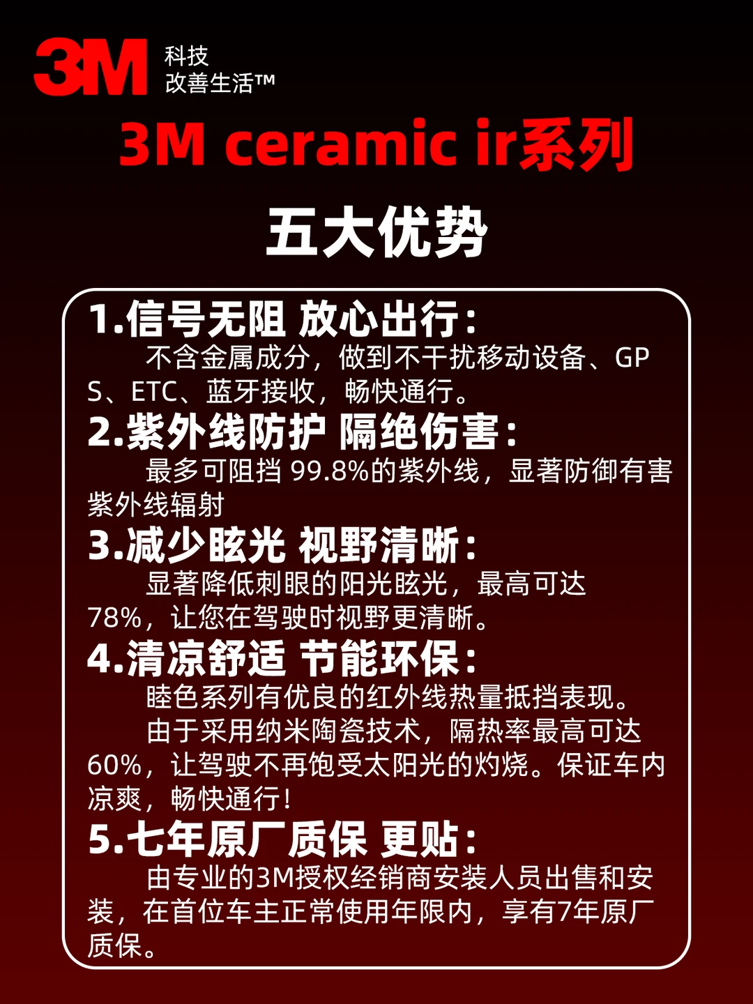 🔒 作为 3M 品牌授权的臻选店,我们提供规范的安装服务。首位车主在正常用车周期内,可享有长达 7 年的原厂质保,让您贴得放心,用得舒心。