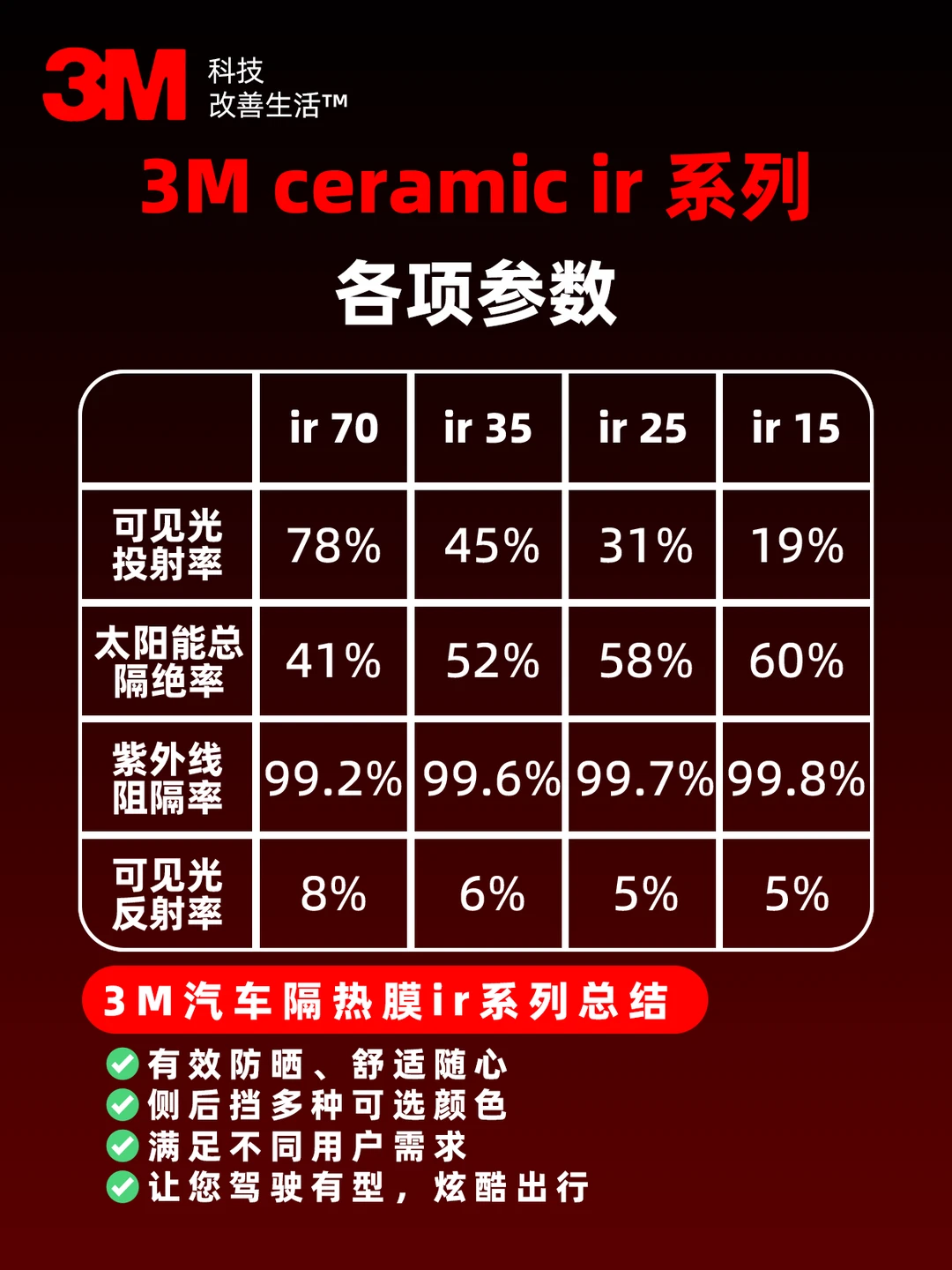 📉 贴膜老友今天为你推荐一款平衡感优异的方案——3M ceramic ir系列。它采用先进的纳米陶瓷工艺,专门为追求实用与质感的车友打造。