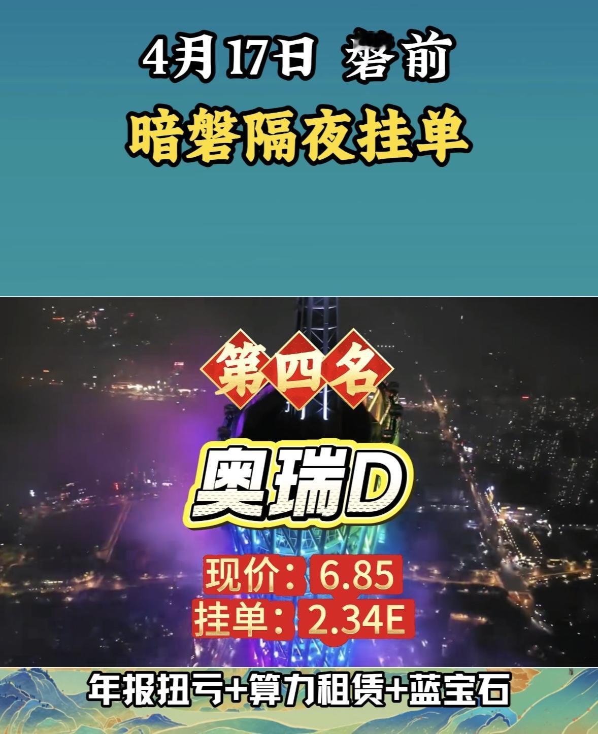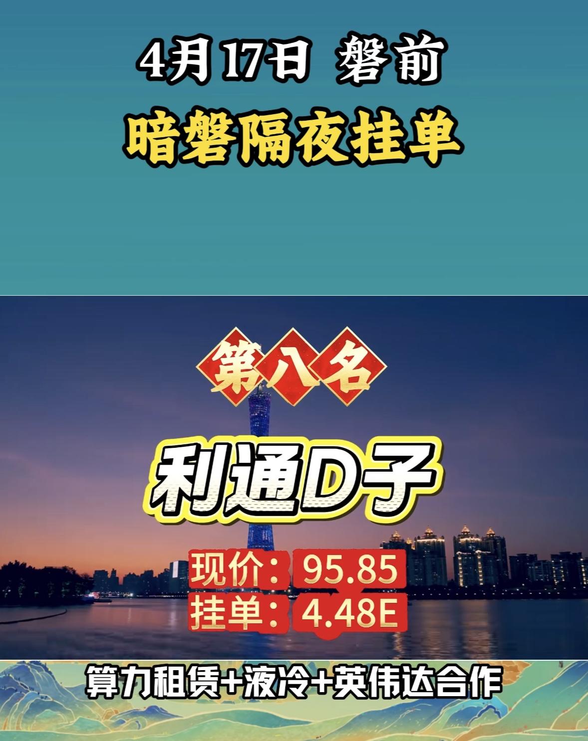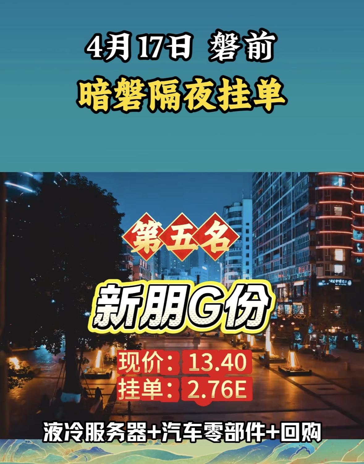 4月17日周五暗盘隔夜挂单排行榜揭晓