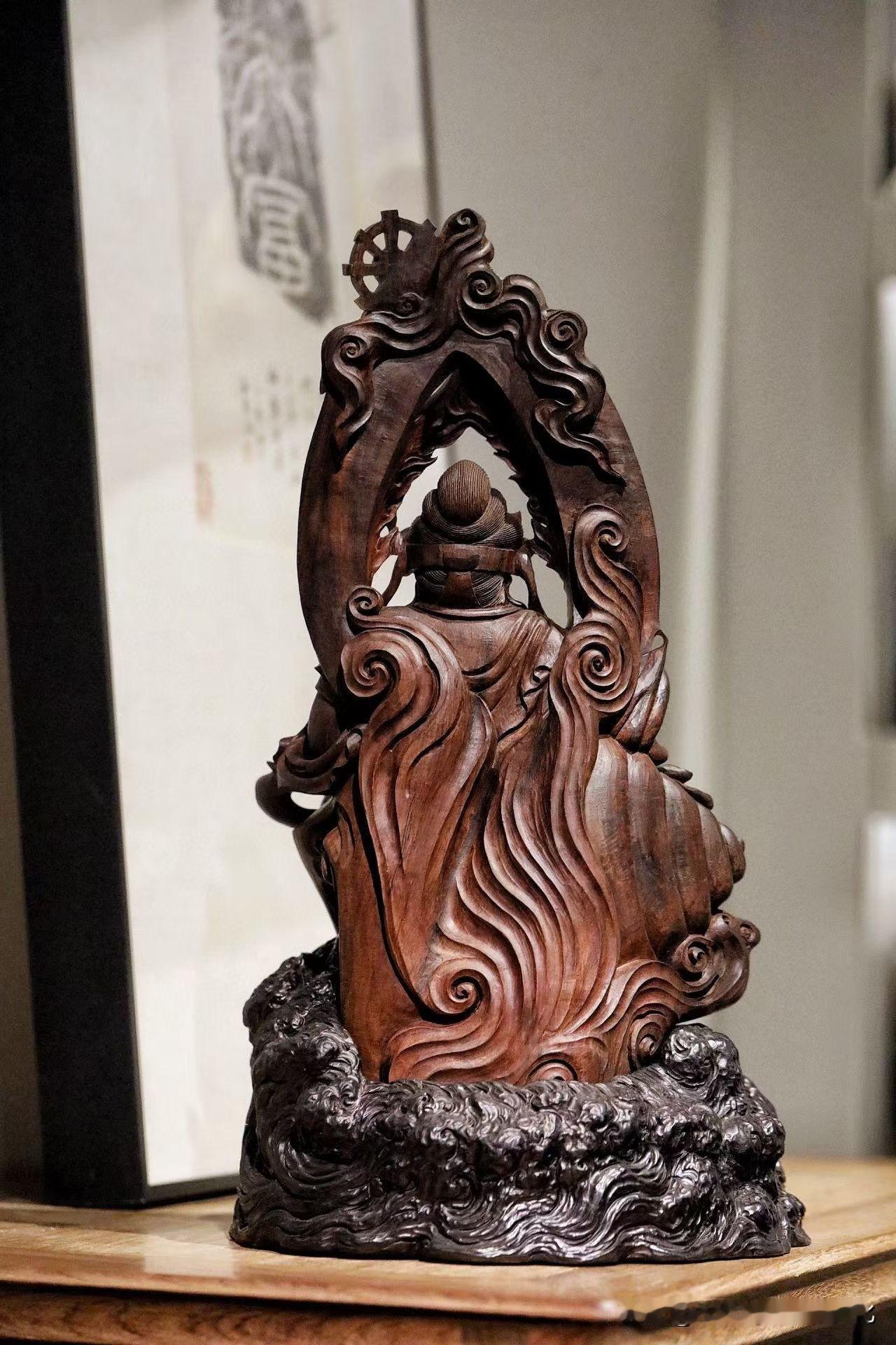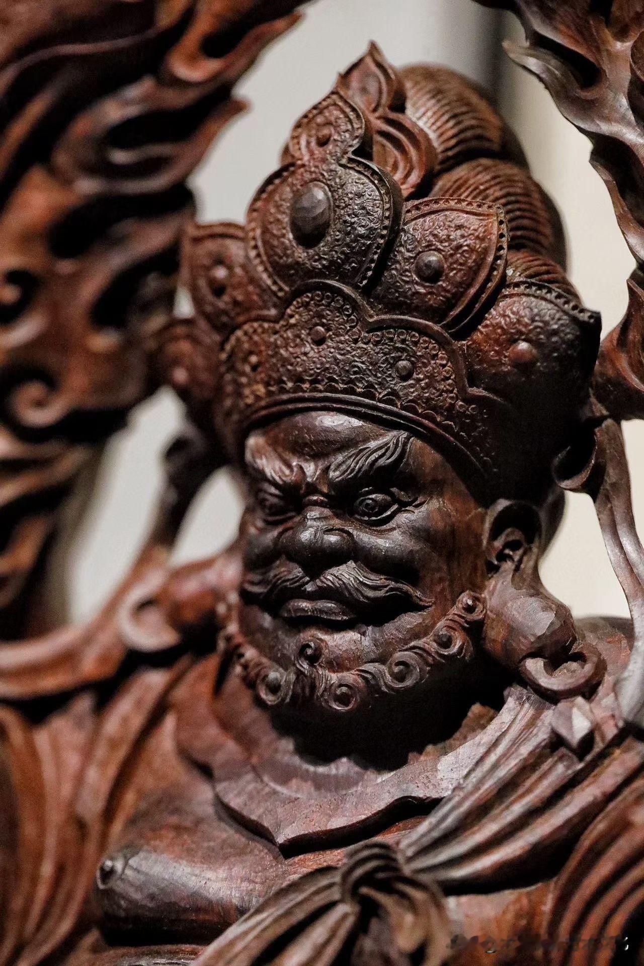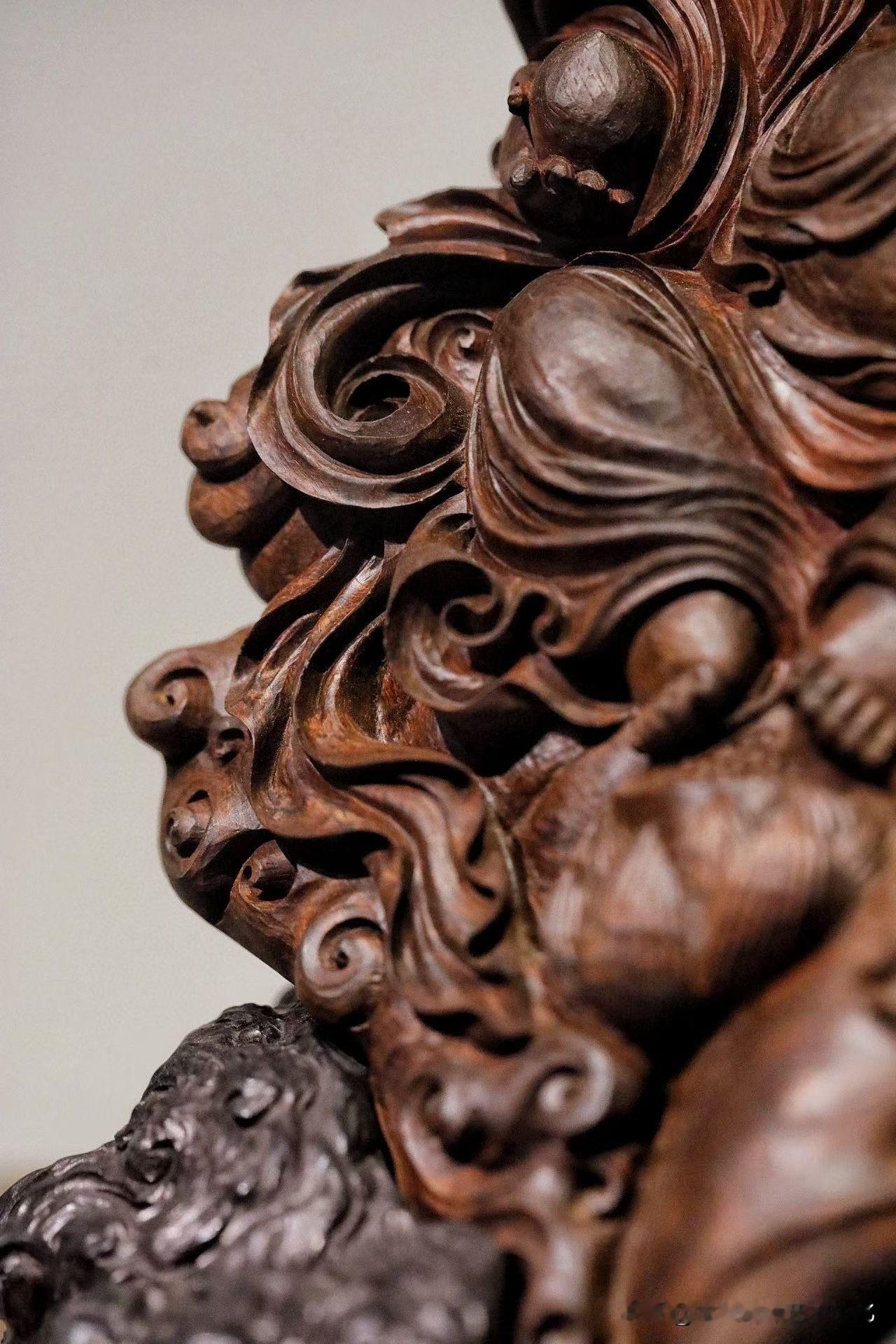 刀工不在繁,而在气。面相威中带慈,衣纹随势流转,云气翻涌却不乱,整尊气息是往下沉的——沉得住,才托得起所谓“财”。