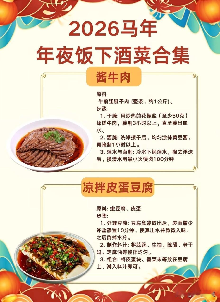 这些下酒菜不仅简单易做,而且性价比高,是喝酒时的绝佳选择。希望大家在享受美酒的同时,也能品尝到这些美味的下酒菜。不妨按照上面的配方试试看,相信会给你带来不一样的饮酒体验。 家庭聚餐下酒菜 下酒菜搭配