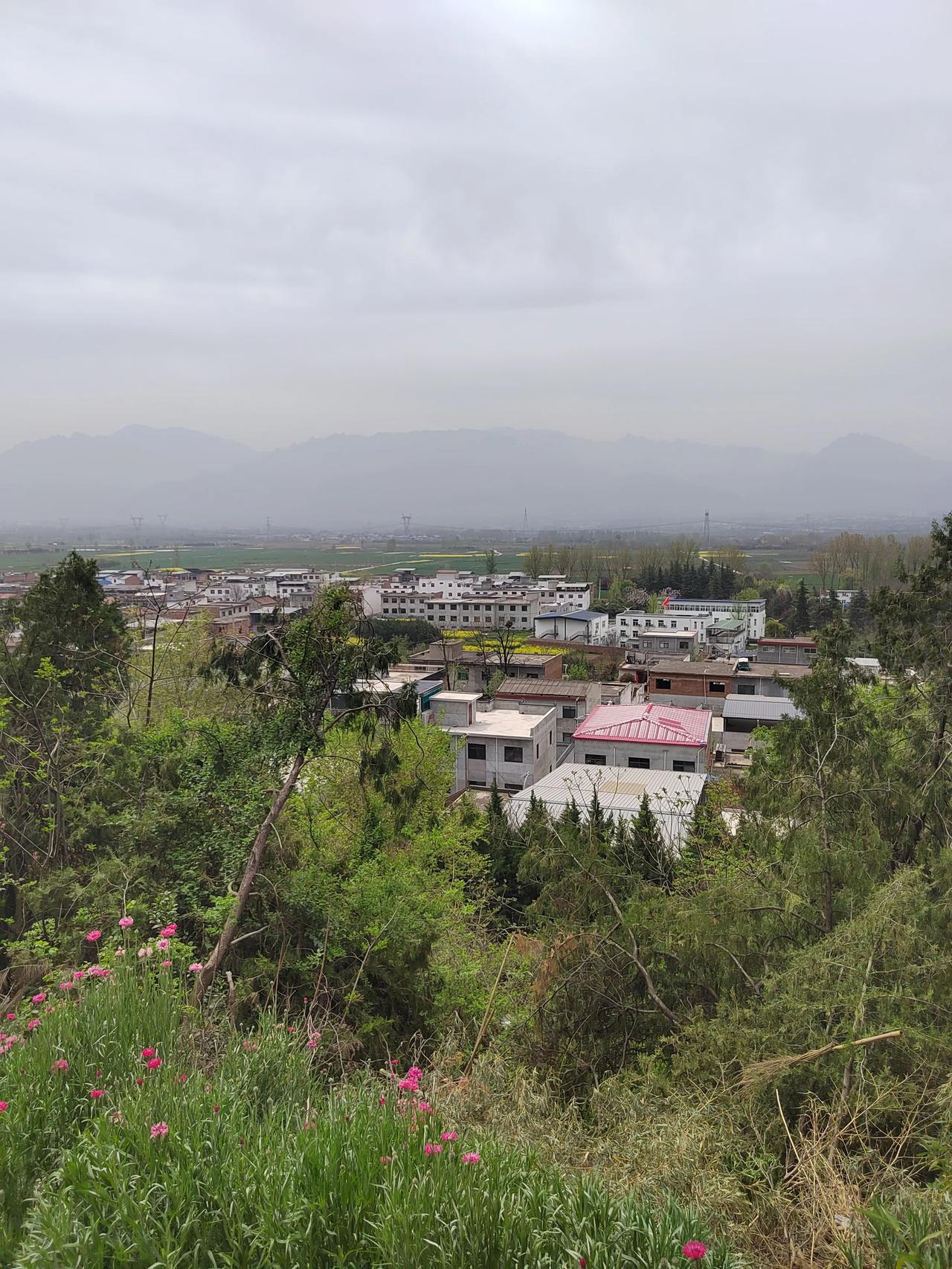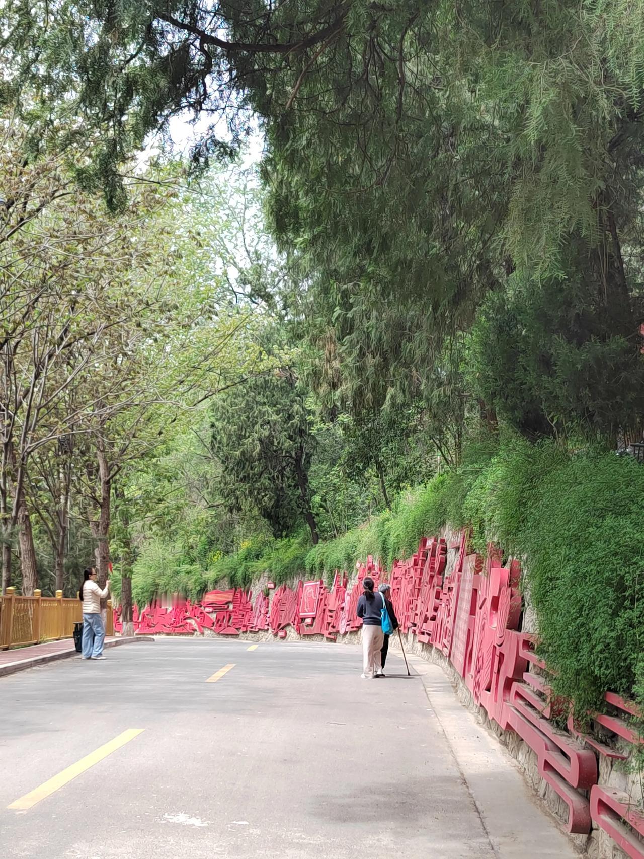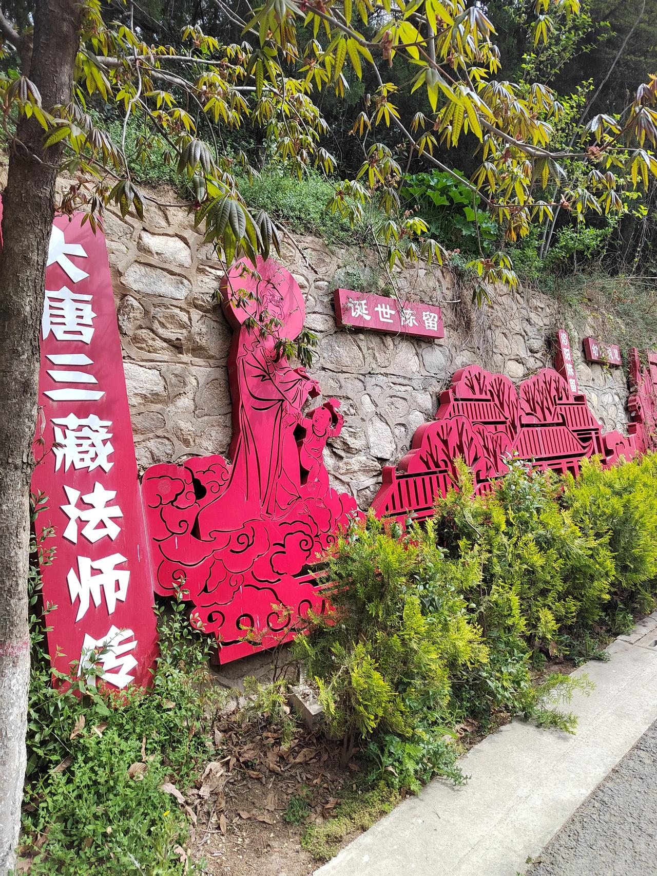 乘公交车去兴教寺,下车后要经过一个村口,再走长长的一段上坡路方能到达。路左侧以红色剪纸的形式介绍了玄奘法师波澜壮阔的一生。右侧是一望无际的直达秦岭脚下的关中平原。我走这段路有些吃力,走走歇歇,要休息几次。
