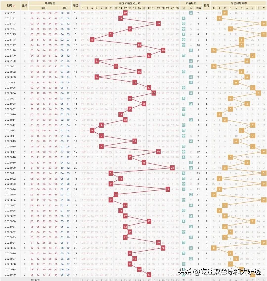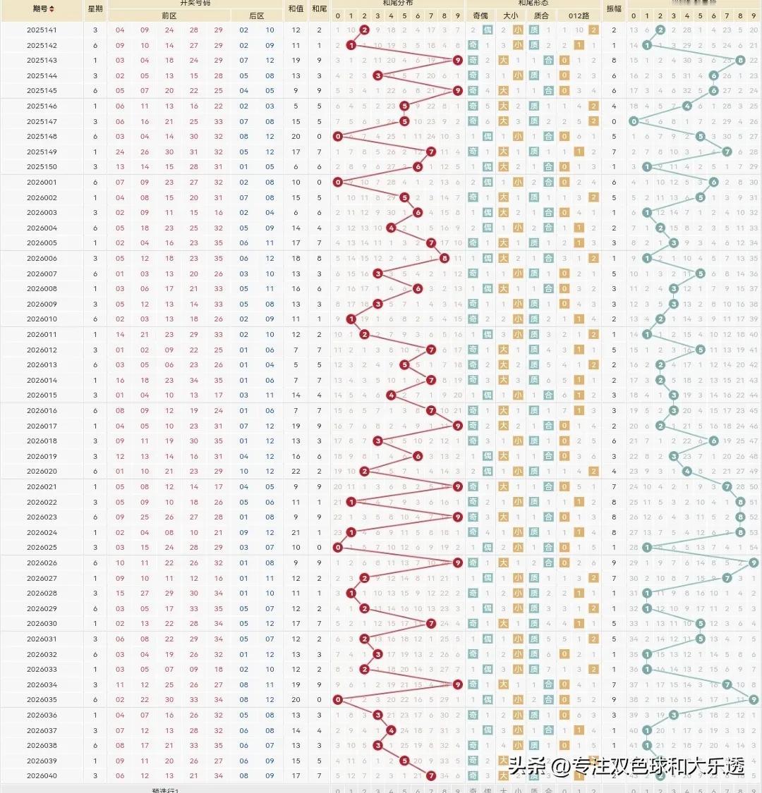 本期041期后区看好和值继续17,也继续看好大大组合。奇偶搭配方面就以奇偶来,本来5+12也不错,但看走势图,感觉斜连的7更有希望,那就7+10吧!