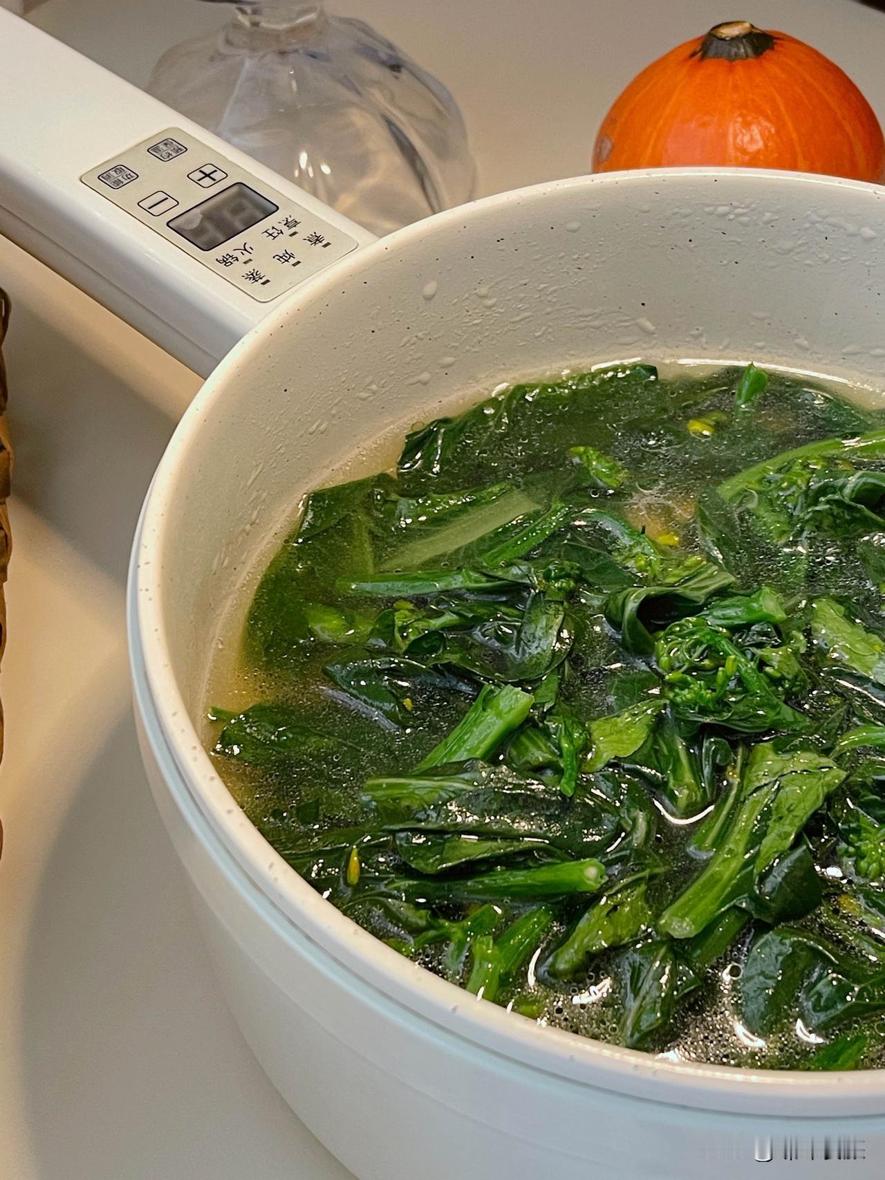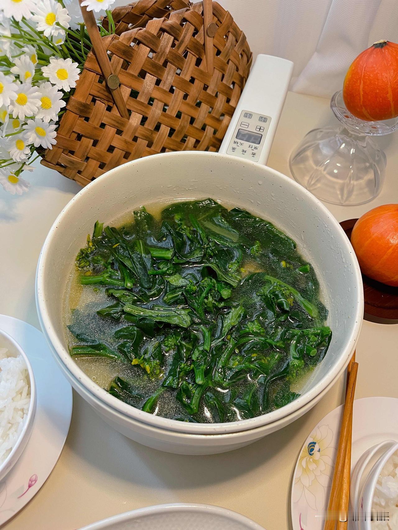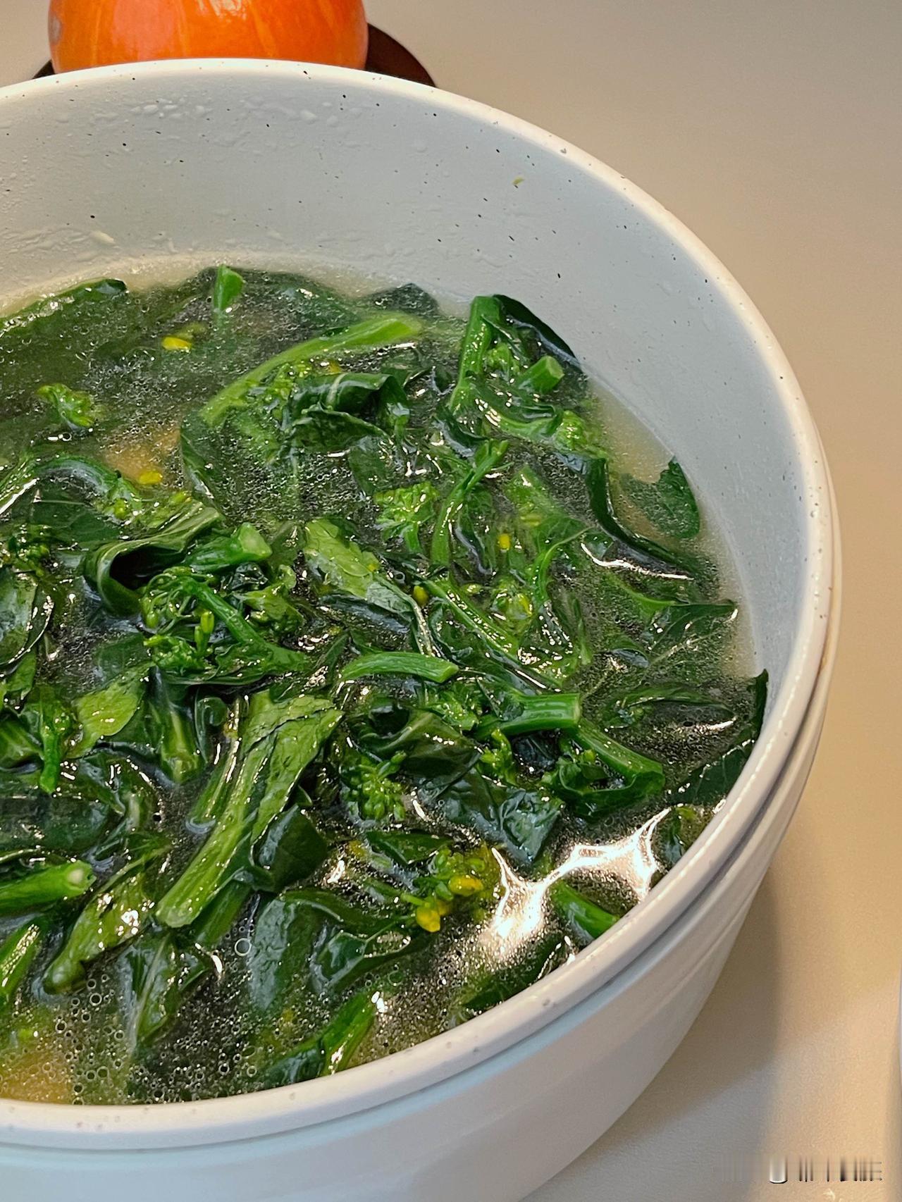 油盐水菜汤,昨天买了6块钱的小菜心,分成两次吃。这才是吃不胖的秘诀,无需特意减肥