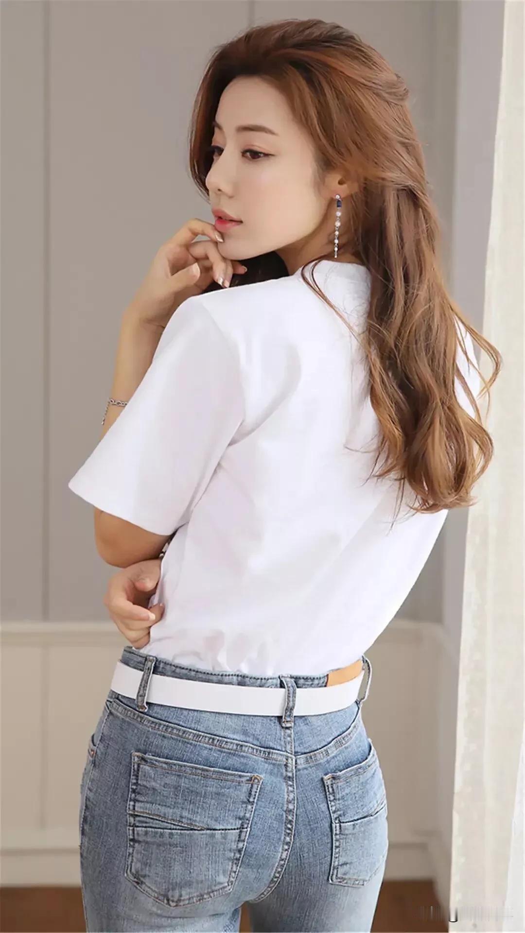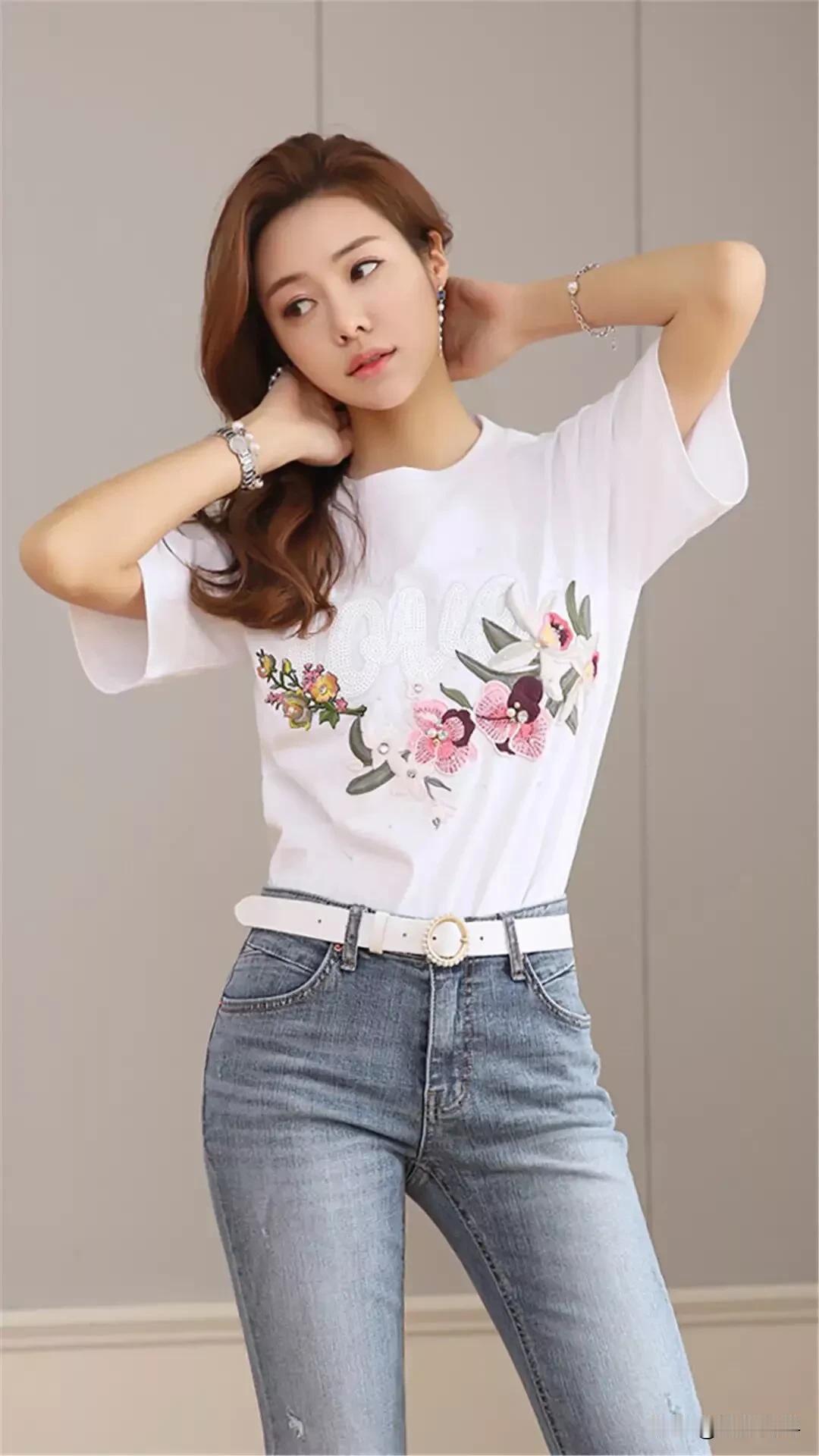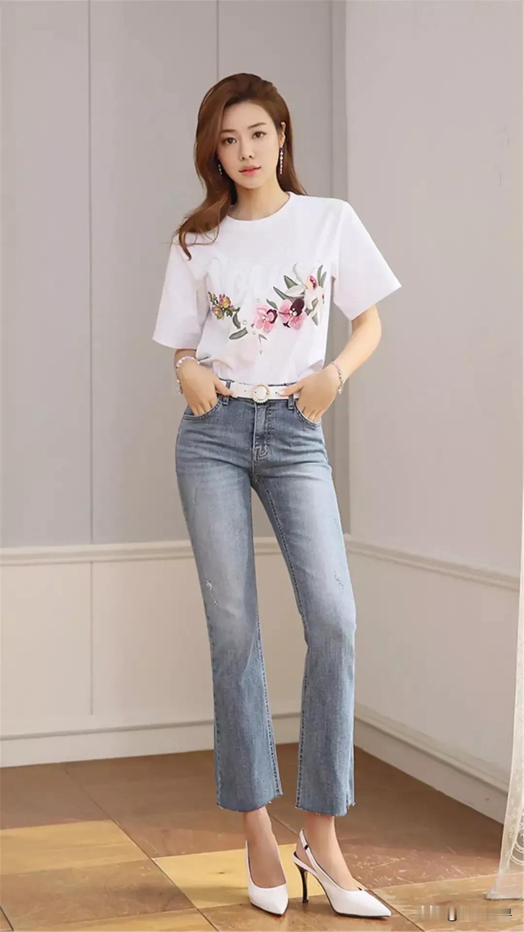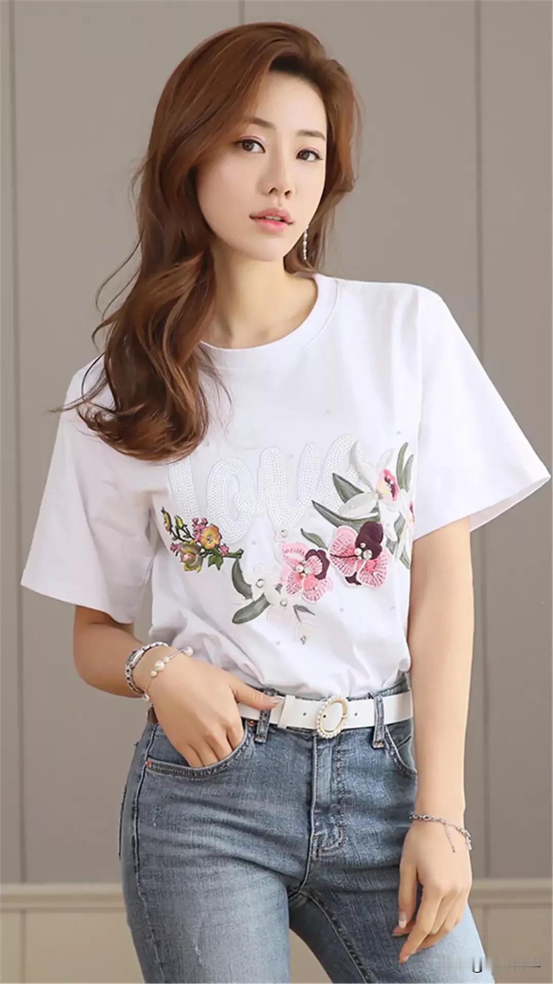白色T恤+牛仔裤,这对组合真是清新少女风穿搭的经典。就像有的青春小姐姐这么穿,活力感直接拉满。白色T恤选修身V领版型,能露出颈部线条,衬得脸小肩薄,还避免了臃肿。下装高腰九分牛仔裤,拉高腰线显腿长,破洞设计又增添时尚细节。