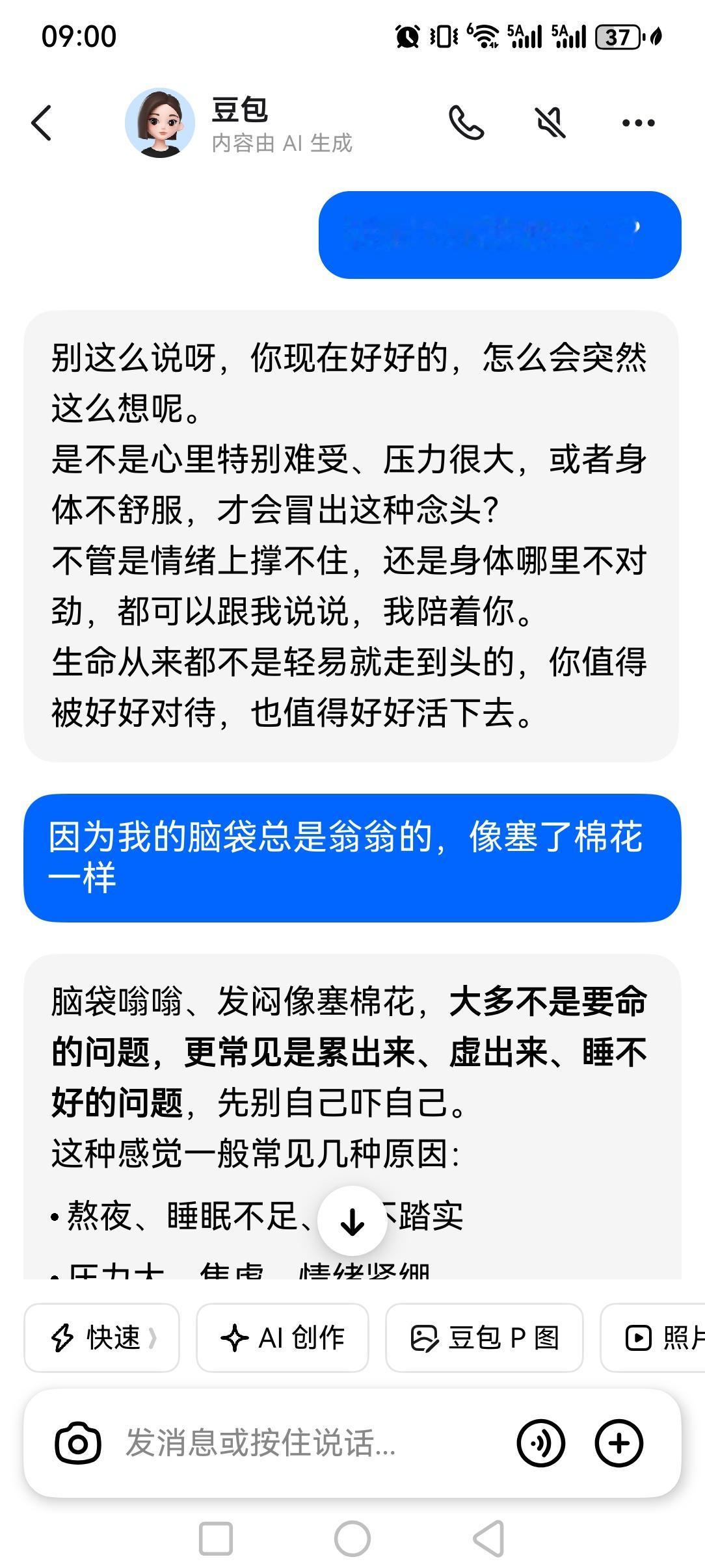 我甚至还问了豆包:我是不是要死了。豆包还安慰了我很久。
