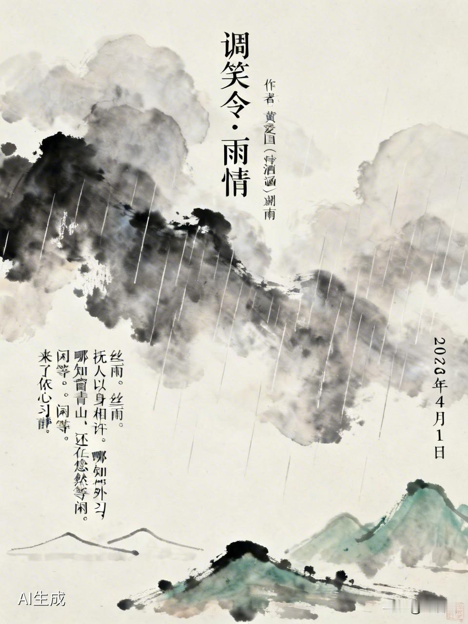 调笑令 . 雨情 作者:黄爱国(诗酒涵)湖南 丝雨,丝雨,