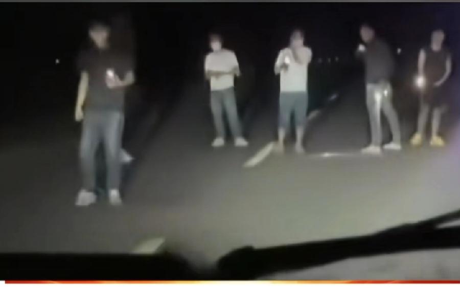 靖西手电筒拦车,5名男子被刑拘,看视频,几乎都是短裤短袖休闲服,一群年轻精神小伙,在国道上站一排,目测有8个人,别说摆的造型还挺酷,不知道为什么只抓了5个?