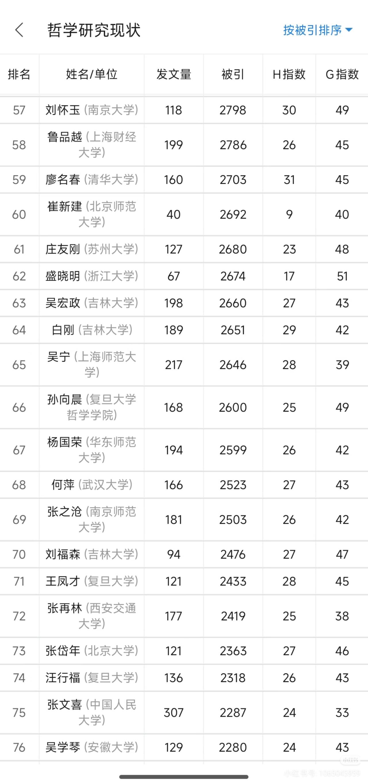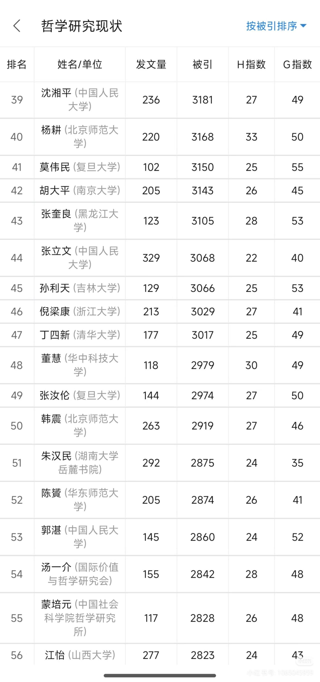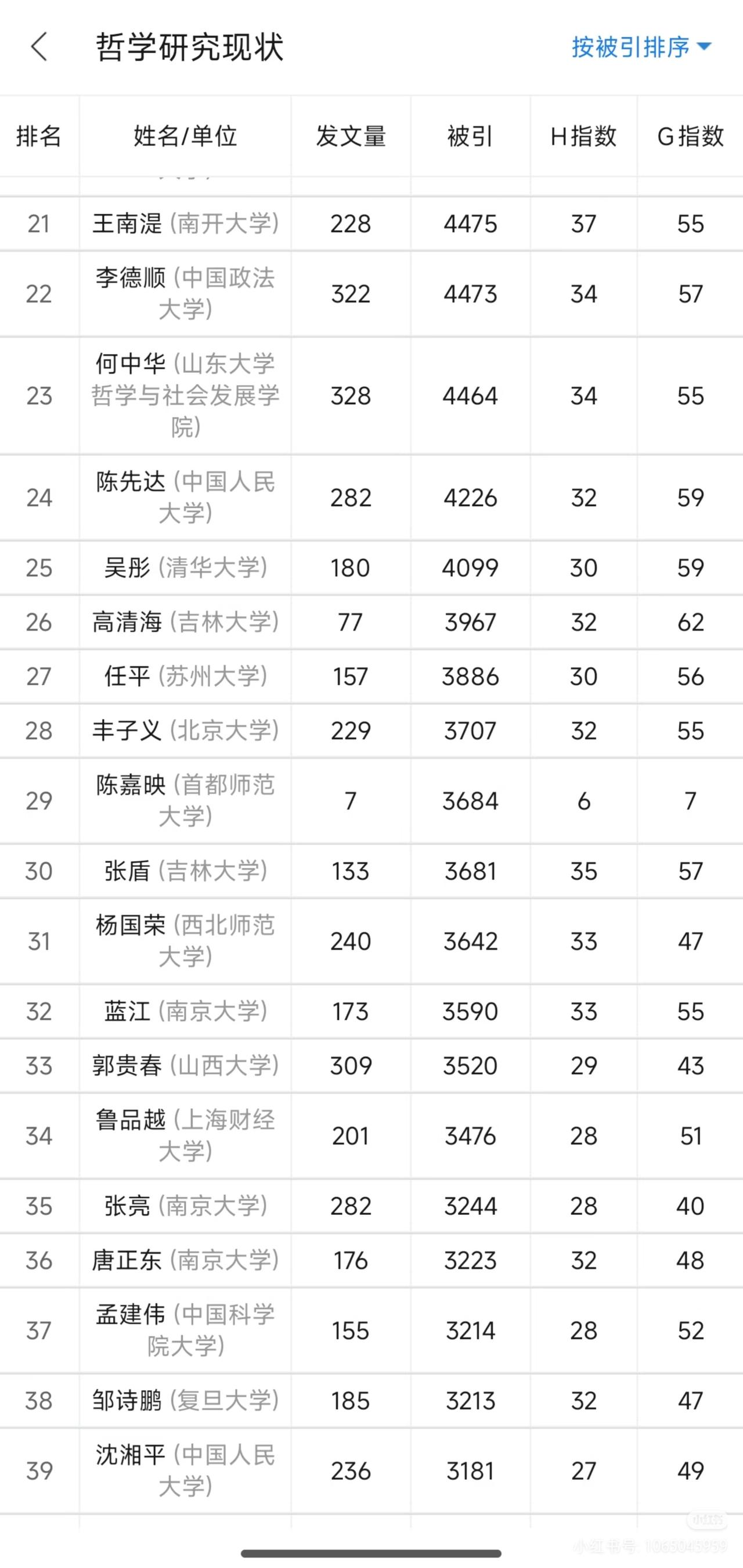 华科两位哲学学者位居全国哲学界发文被引次数前八,彰显哲学新锐实力!从图表中可以看