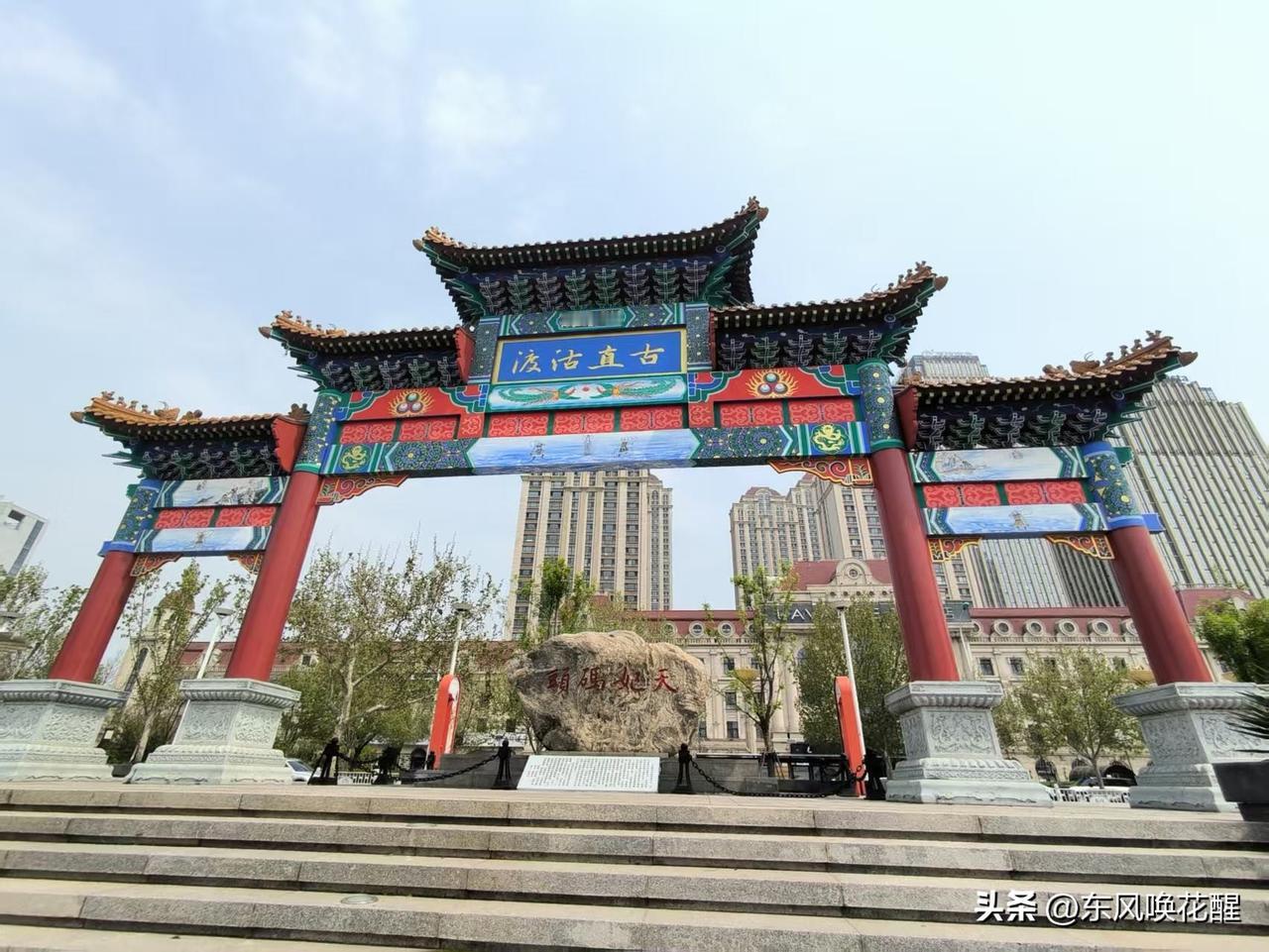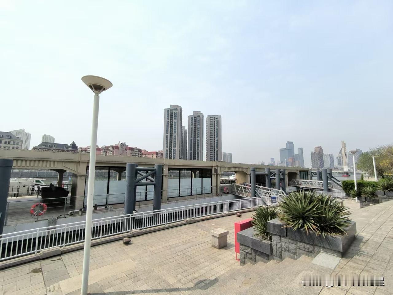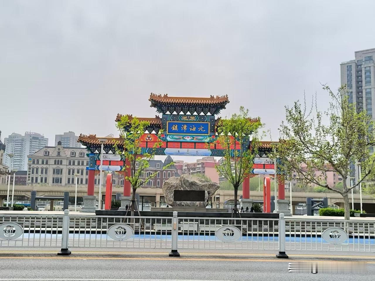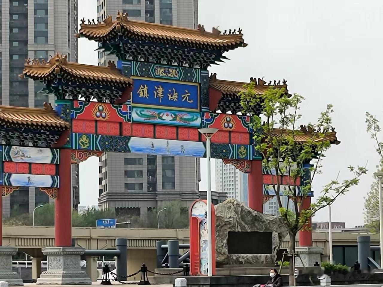 去河滨公园的路上,拍了几张海河东路的风景。 海河岸边上的天妃码头大牌坊,远远看着