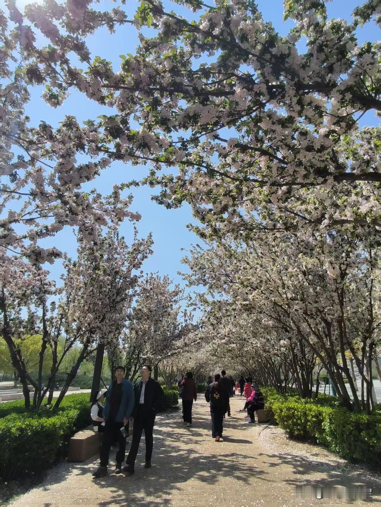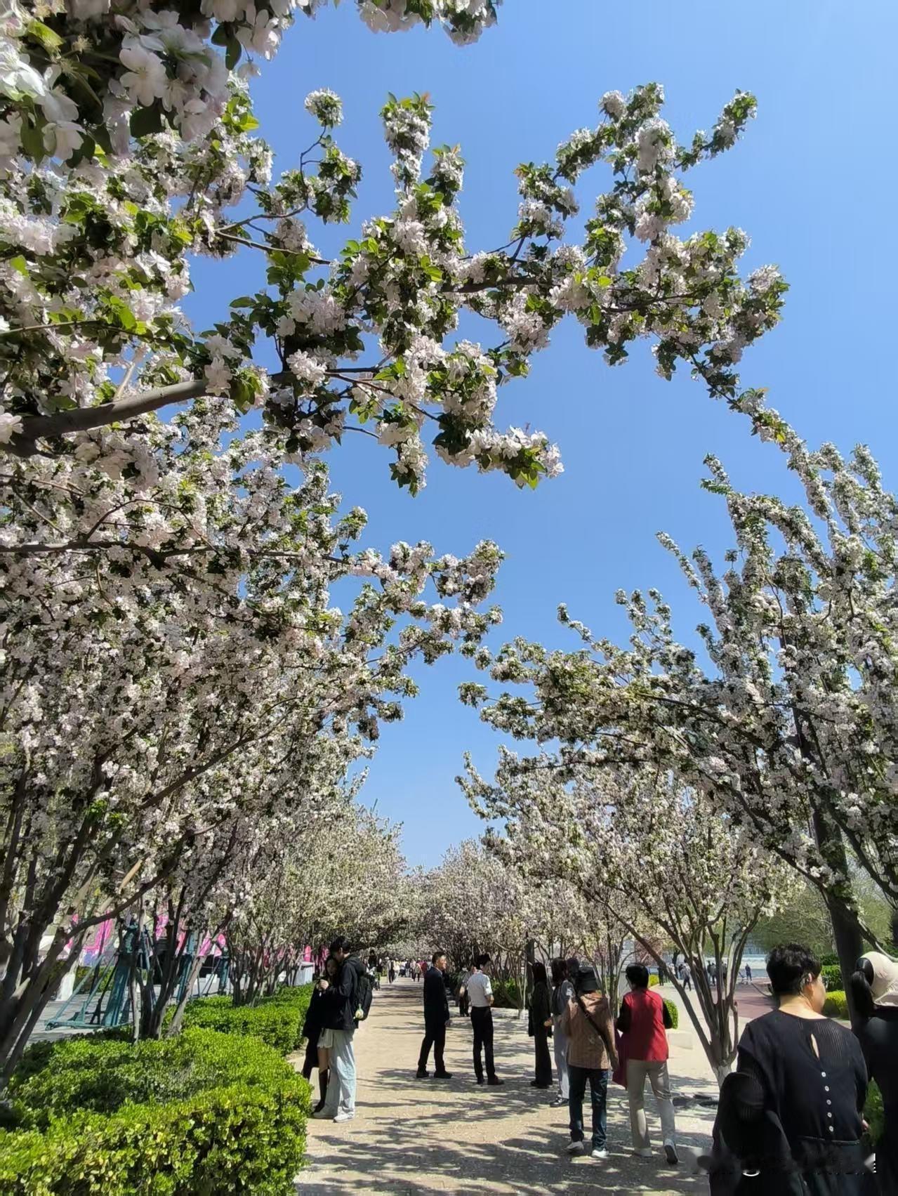 那里面积宽阔,植物茂盛,湖水清澈,花的品种特别多,就那一排海棠走道,美的让人惊叹,看着真是美。