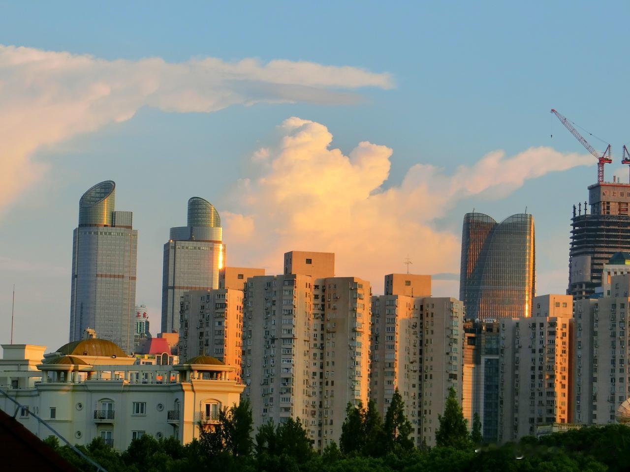 金色徐家汇! 天空的彩云和金色的晚霞,犹如给城市的建筑物穿上了美丽