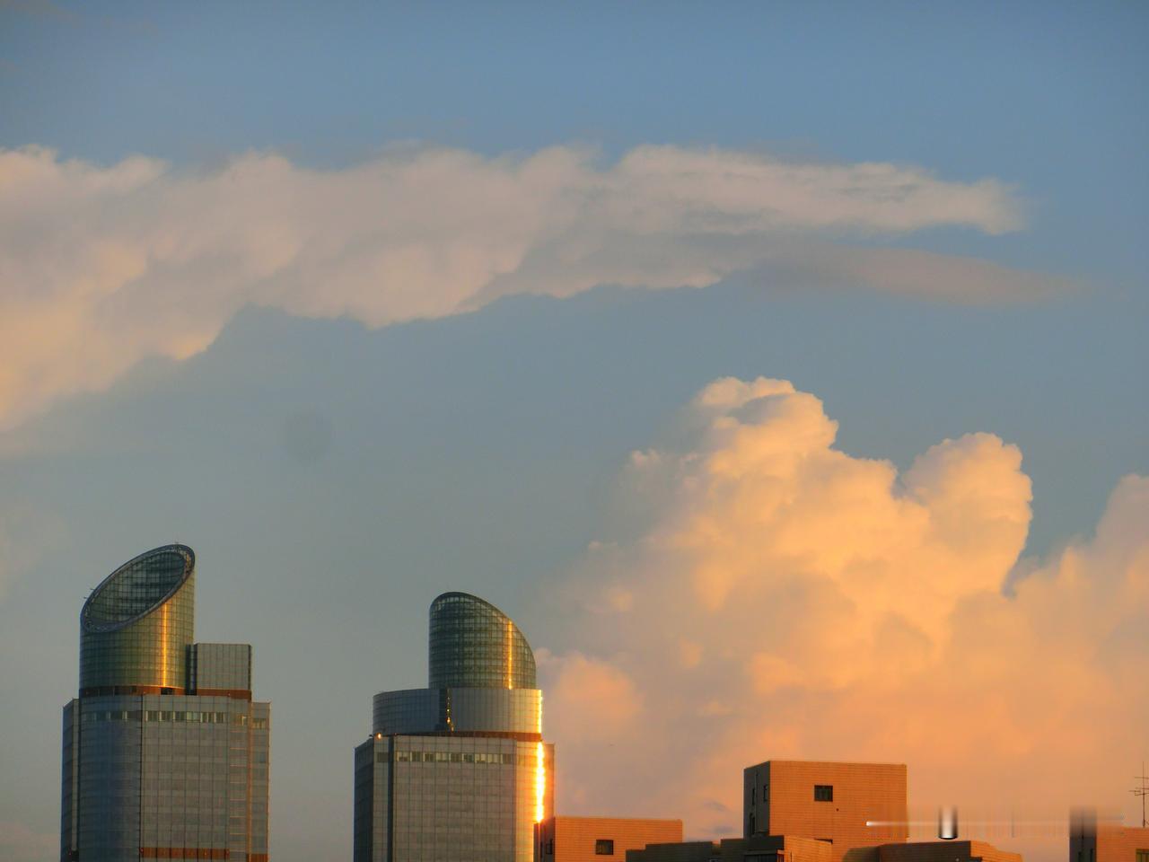 天空的彩云和金色的晚霞,犹如给城市的建筑物穿上了美丽的迷彩服!天气瞬息万变,喜欢摄影的人,总是随时都在“取景”,敏感身边的变化,“一有动静”马上咔嚓咔嚓,先拍下再说。[偷笑]