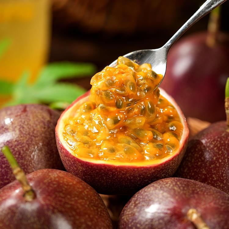 2. 挖2勺百香果肉,加适量蜂蜜搅匀