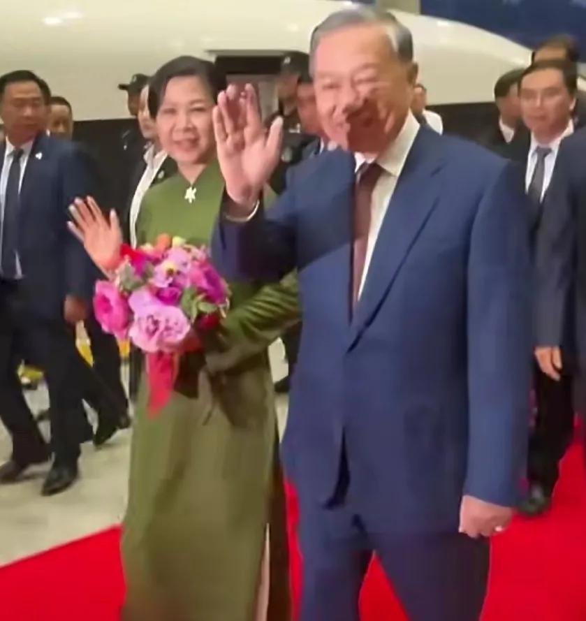 越共中央总书记主席苏林和夫人从北京乘高铁抵达广西南宁。