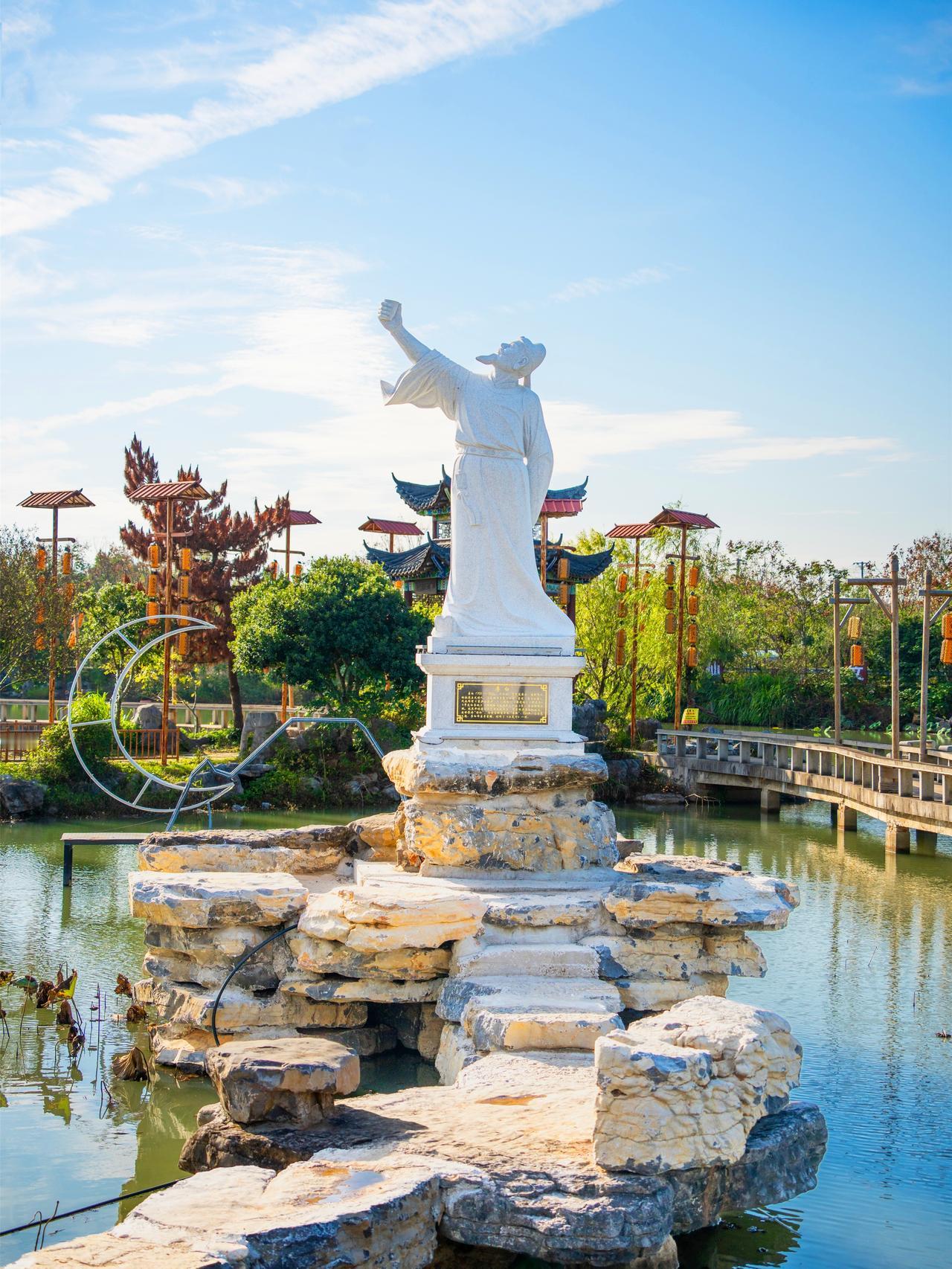 园内是徽派园林风格,白墙黛瓦、亭台水榭,充满江南水墨画氛围,穿汉服或旗袍拍照超美。还有李白雕塑、诗词碑林,可感受诗仙文化。这里还能 K 歌、棋牌、露营,适合周末与朋友一起来散心打卡哦。