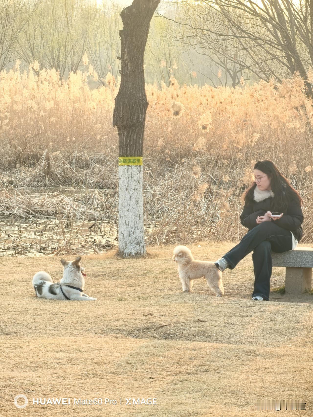 最美的风景,始终在路上。 美女带狗散步 公园带狗