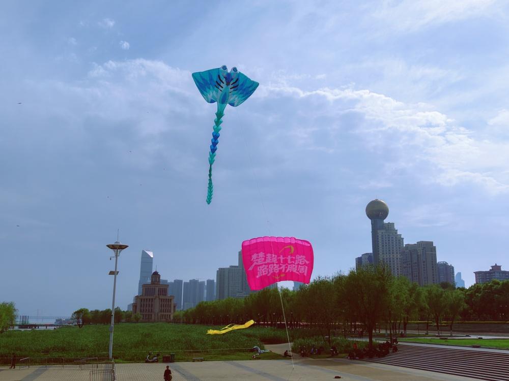 【江滩风筝飞舞 助燃楚超战火】4月10日下午,汉口江滩三阳广场亲水平台上,多个大型风筝迎着江风翩然升起,在长江上空划出绚丽弧线。这场以“楚超”为主题的放飞活动,旨在为2026年湖北城市足球联赛预热喝彩,让跃动的风筝承载对赛事的热切期盼,在江城天际写下对“楚超”圆满成功的祝福。