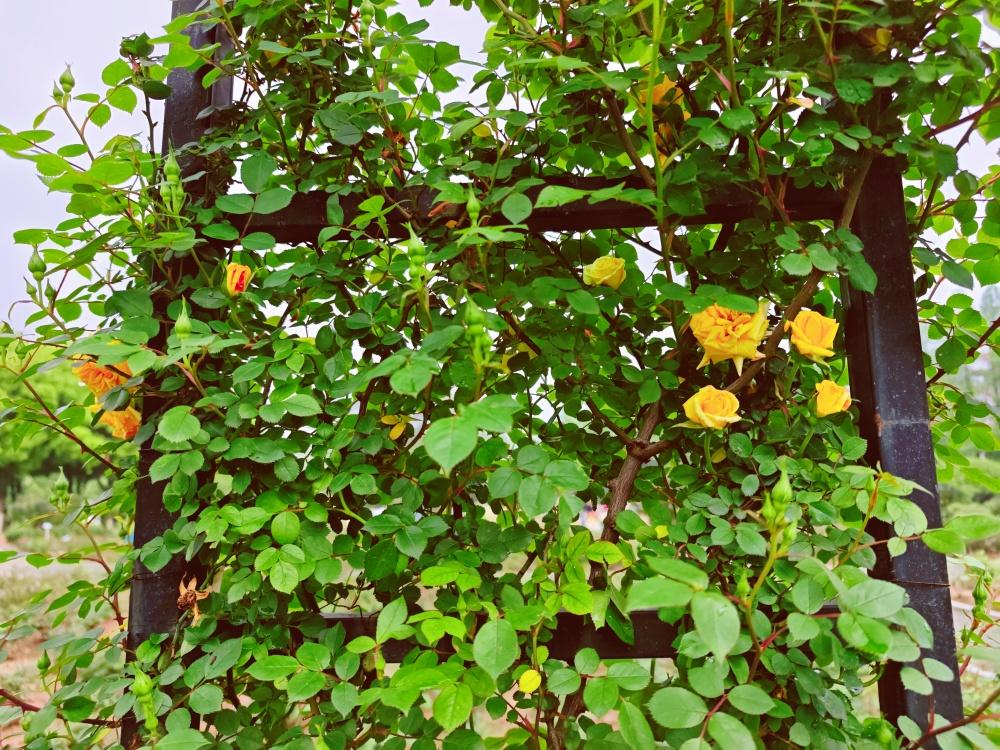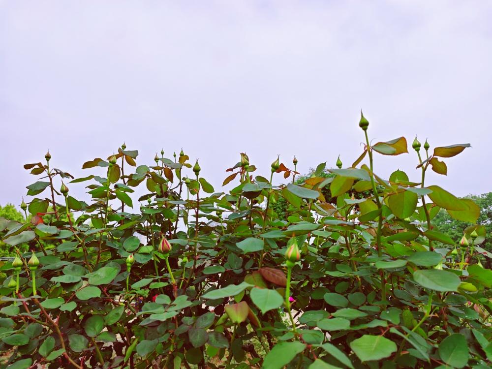 【蔷薇已含苞待放部分零星开花】4月10日,在武汉和平公园月季园看到,已有月季、蔷