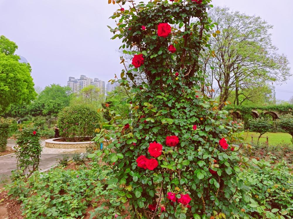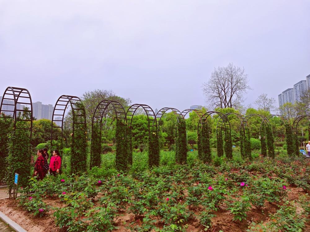 【蔷薇已含苞待放部分零星开花】4月10日,在武汉和平公园月季园看到,已有月季、蔷薇都已含苞待放,已有部分零星开花啦。园内不少市民和游人在寻找花儿,打卡拍照。再过几天就可看到盛开的蔷薇花了。