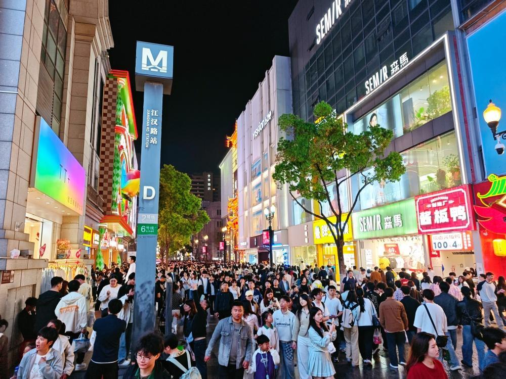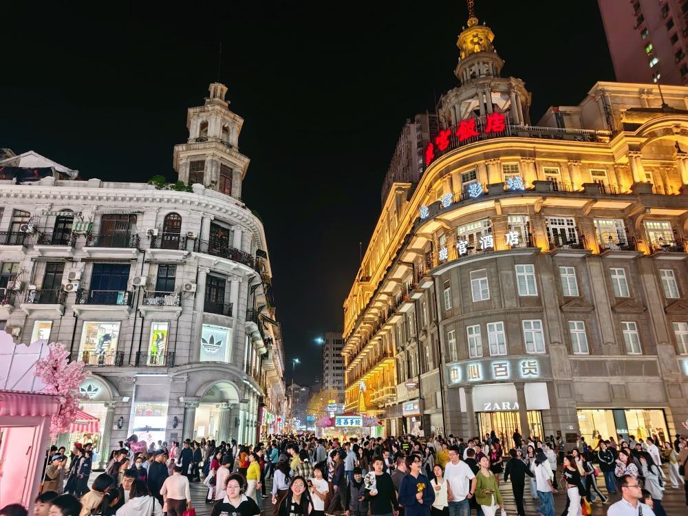 【小长假第一天江汉路人从众】清明小长假第一天,4月5日晚上,武汉到处都是人,据悉来了一亿人,还有一亿人在路上。在有“天下第一步行街”的汉口江汉路步行街,人潮涌动,把江汉路、水塔、保成路等围着水泄不通。“江汉路来了一亿人”、“还有一亿人在来的路上”。
