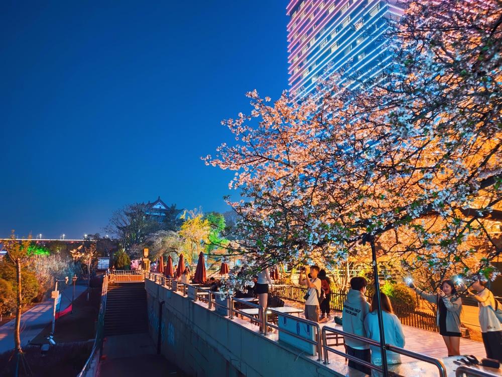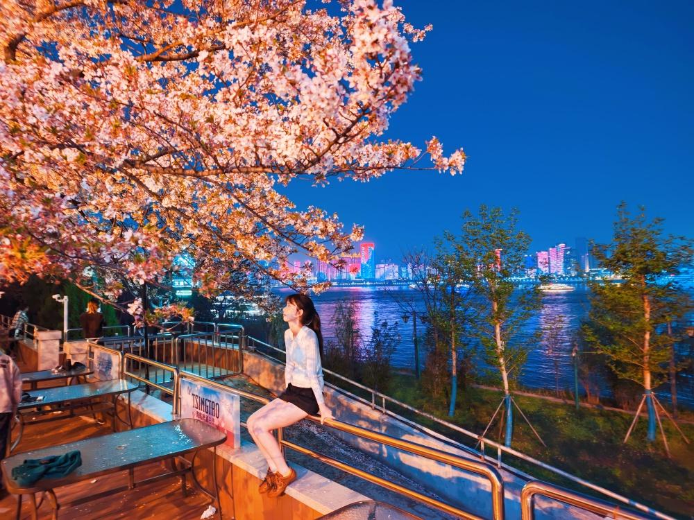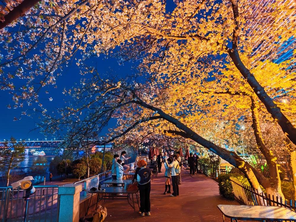 【晴川饭店樱花迎尾声】武汉多数中樱已凋零长叶,晴川饭店的中樱仍在绽放,正值今年最