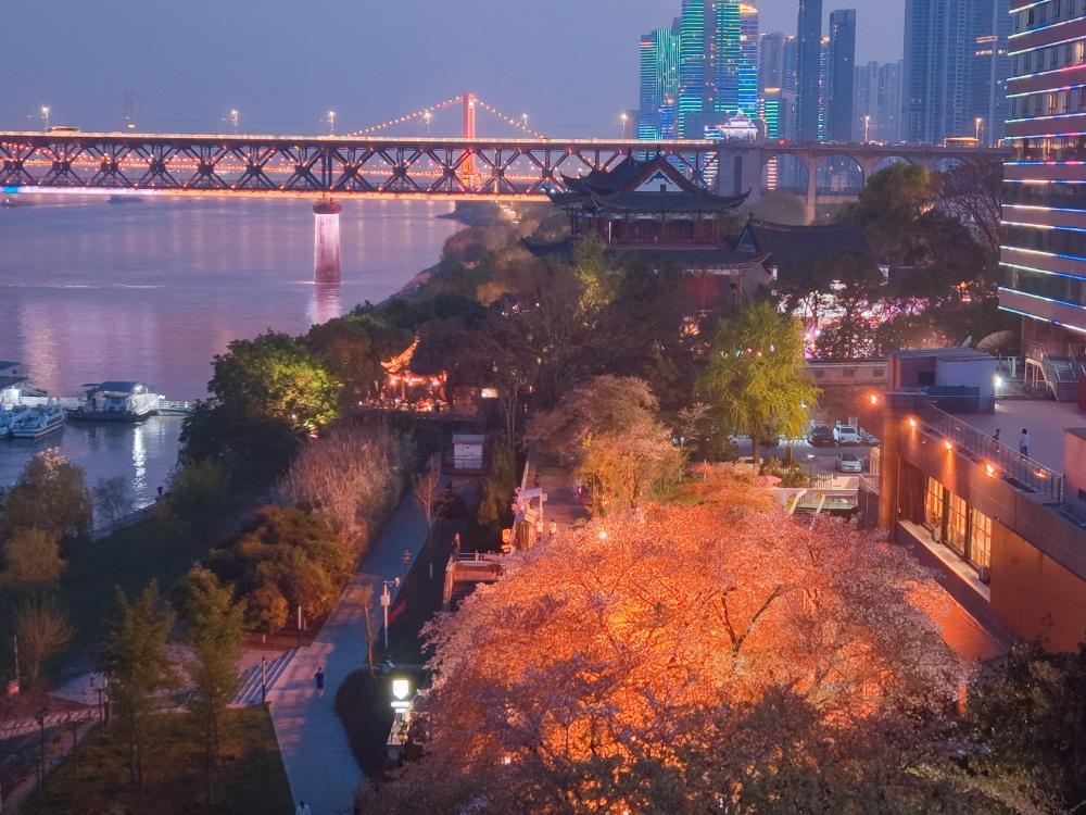 【晴川饭店樱花迎尾声】武汉多数中樱已凋零长叶,晴川饭店的中樱仍在绽放,正值今年最后观赏期。清明小长假还可抓住尾巴赏樱,周边龟山、晴川阁均免费开放,错过就要再等一年。相约春天赏樱花