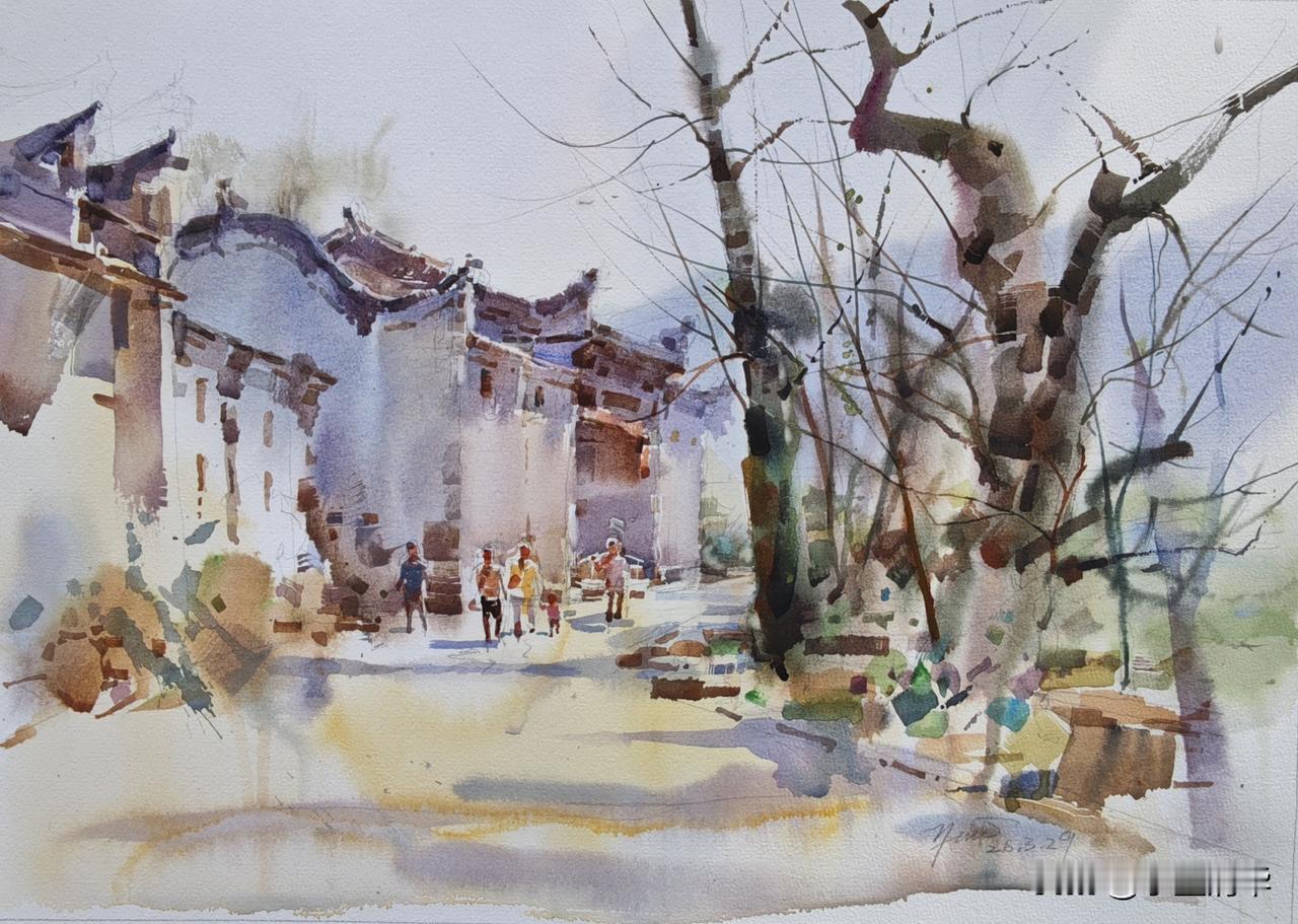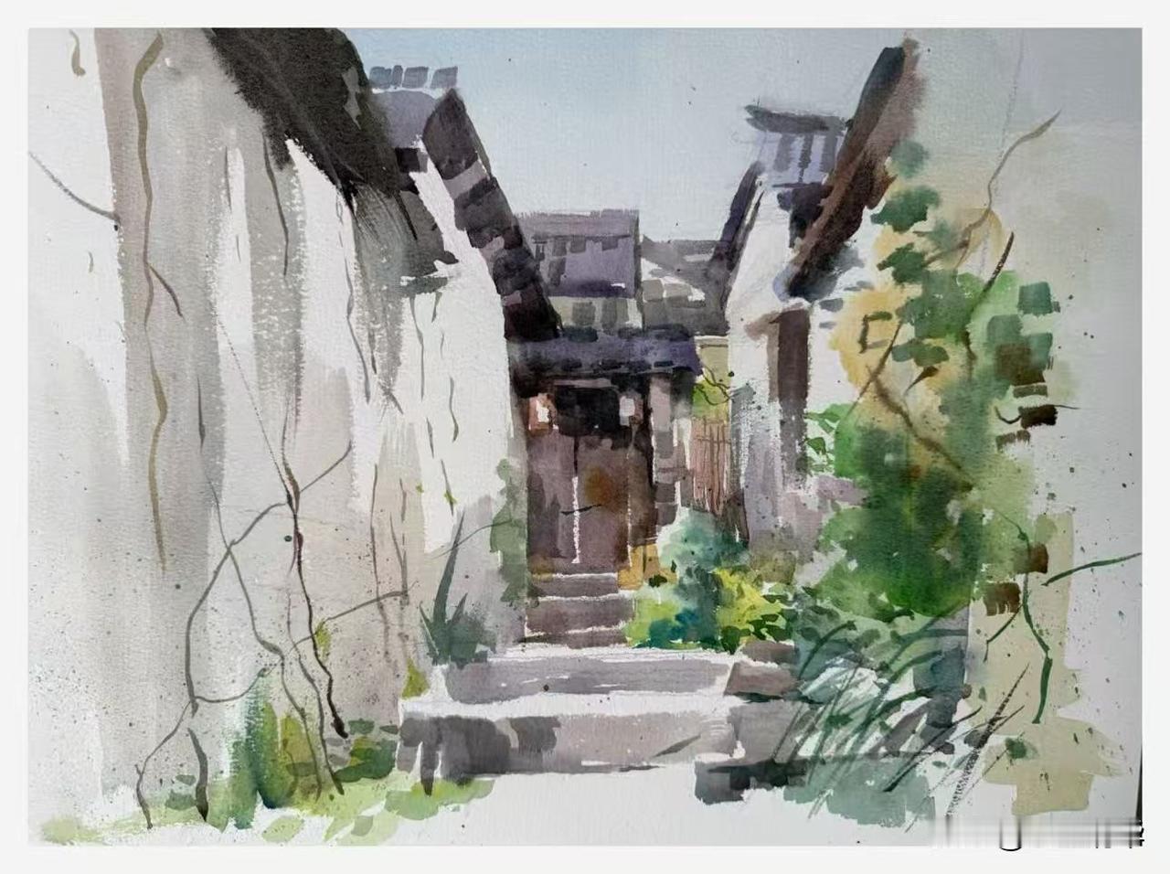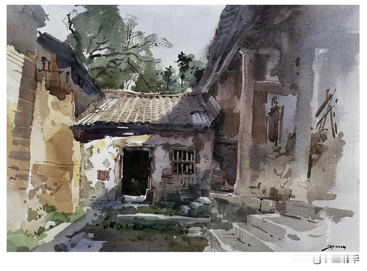 水彩作品赏析全国水彩画名家走进大别山新县西河湾古村写生作品欣赏